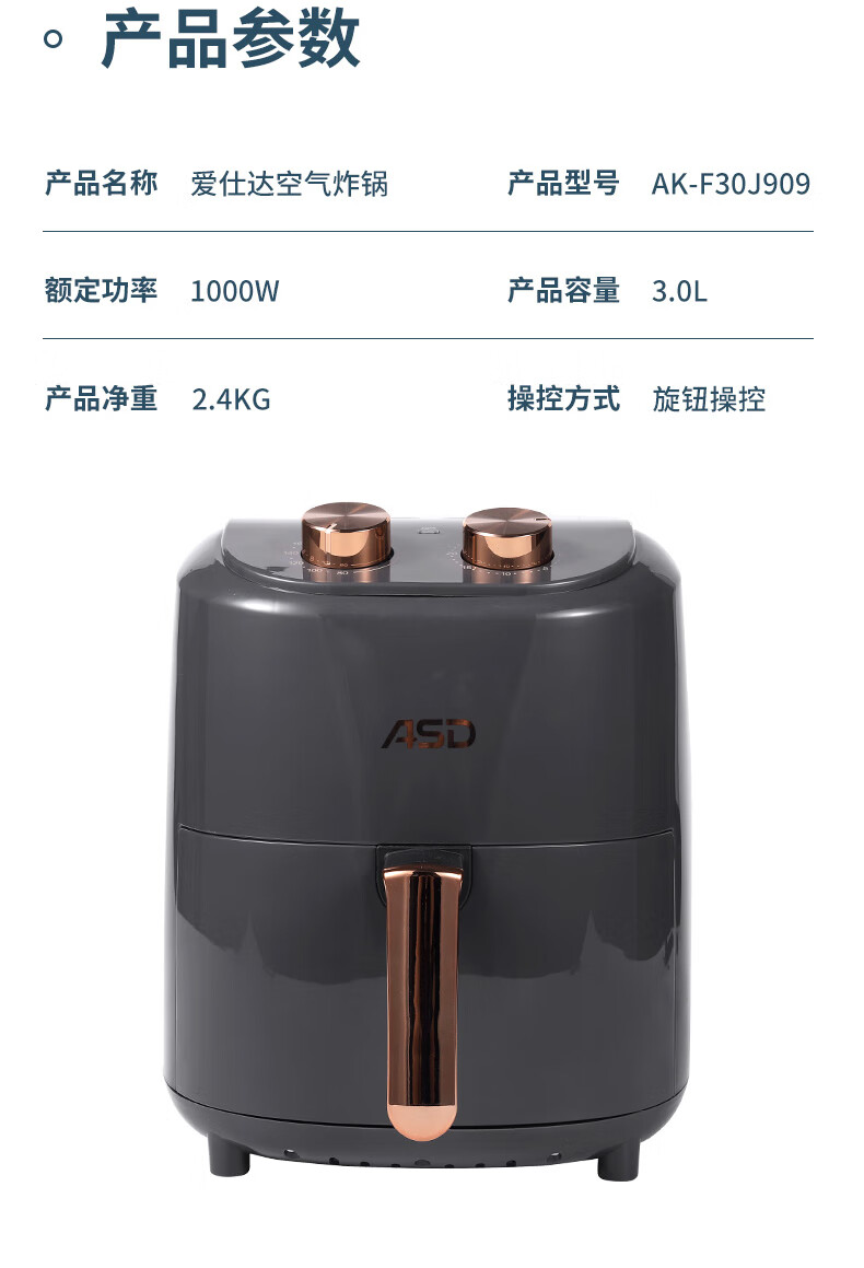 爱仕达 3L空气炸锅AK-F30J909