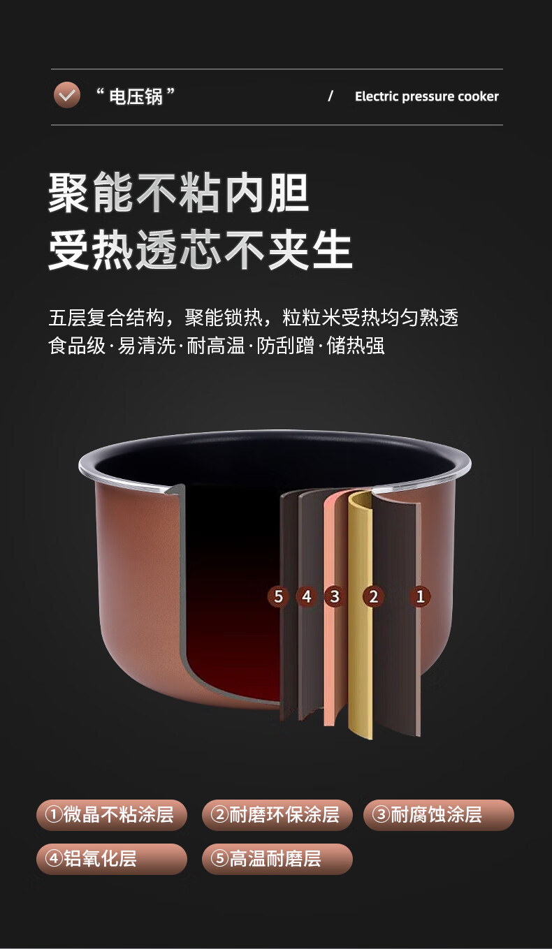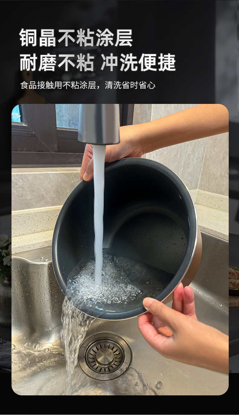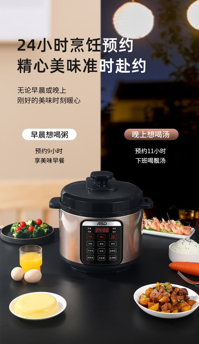 前拆大面板设计,时尚大方;全塑防烫设计,使用更安全;24小时预约,10大烹饪功能,操作简单;八重安全保护装置,防溢,防爆,防堵;超厚双喷内胆,传热快,不变形