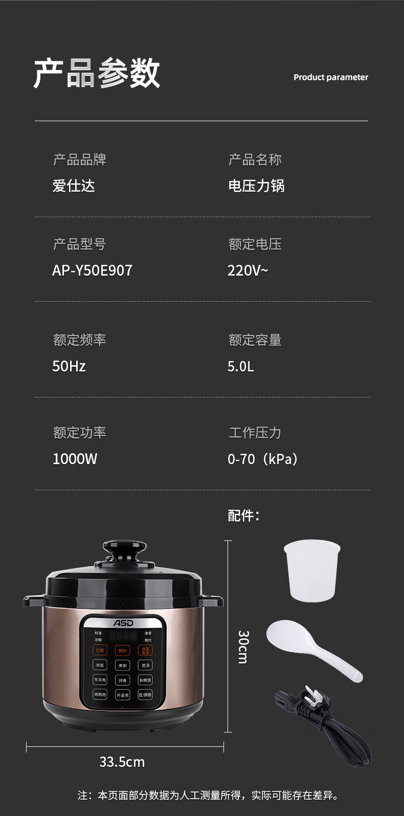 爱仕达 5L多功能电压力锅AP-Y50E907