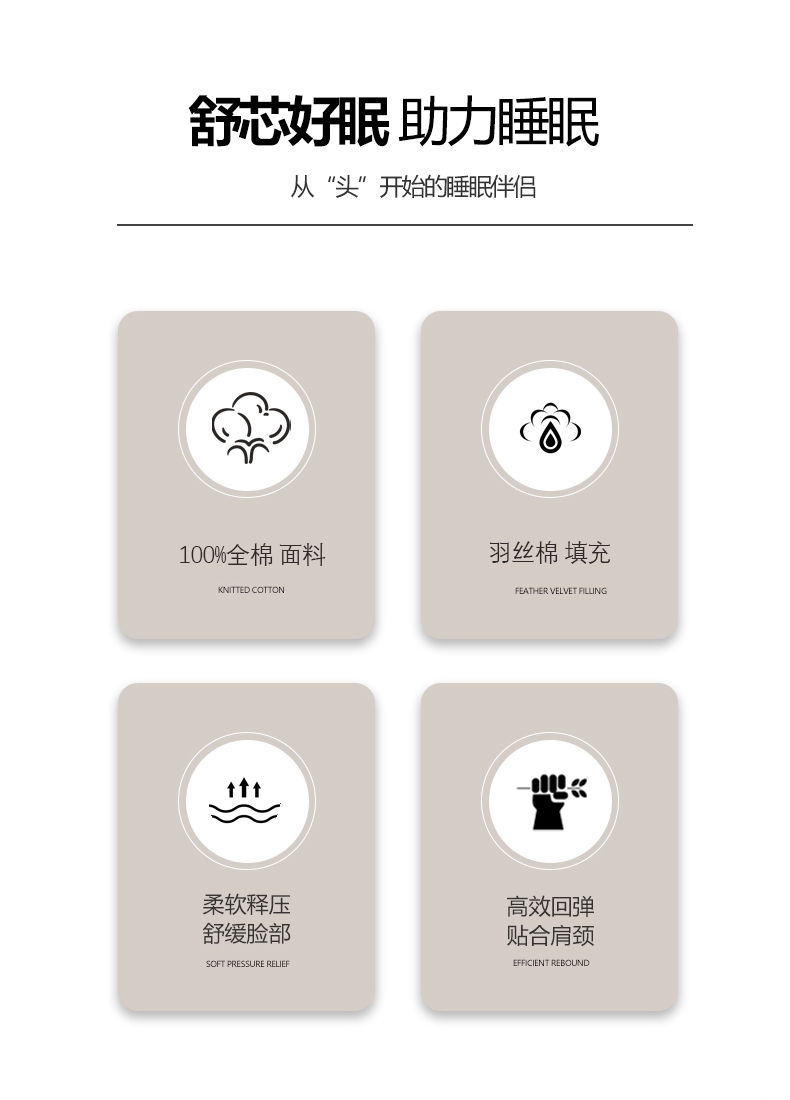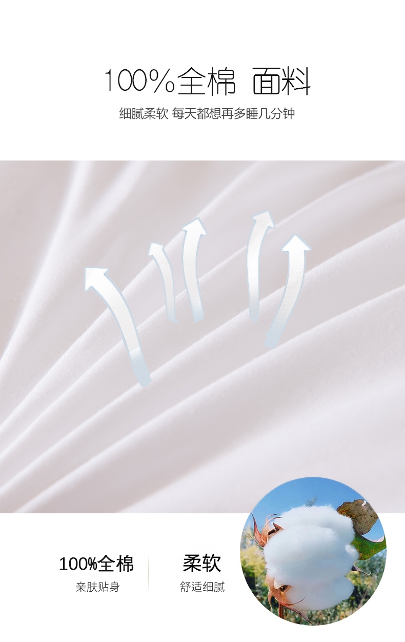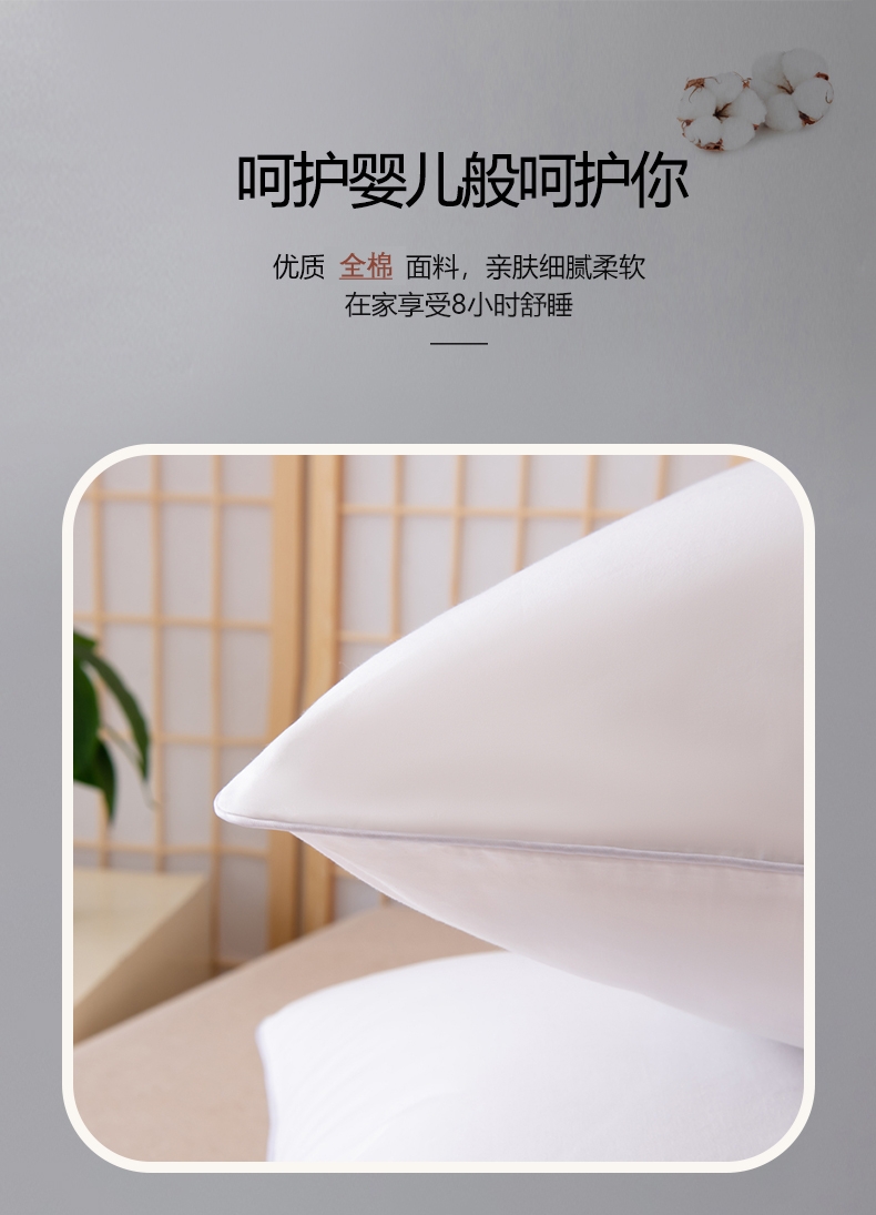 柔软舒适,精选优质全棉面料;轻薄透气。惊喜绗缝,优质绗缝工艺,不抛料,品质保障;枕头高弹力,贴合人体脊椎生长曲度,仰睡侧睡都可以