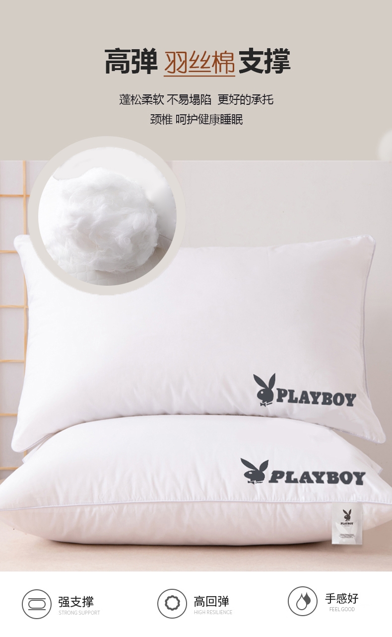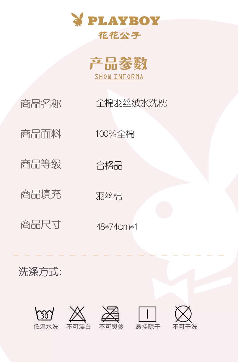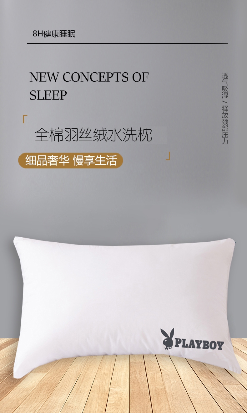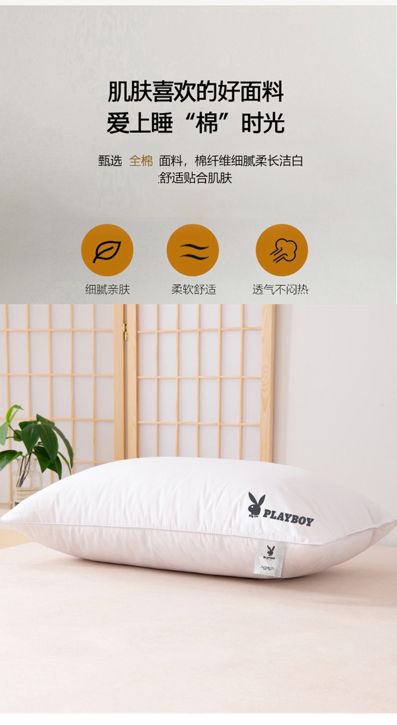 花花公子 全棉羽丝绒水洗枕PB-25MC773