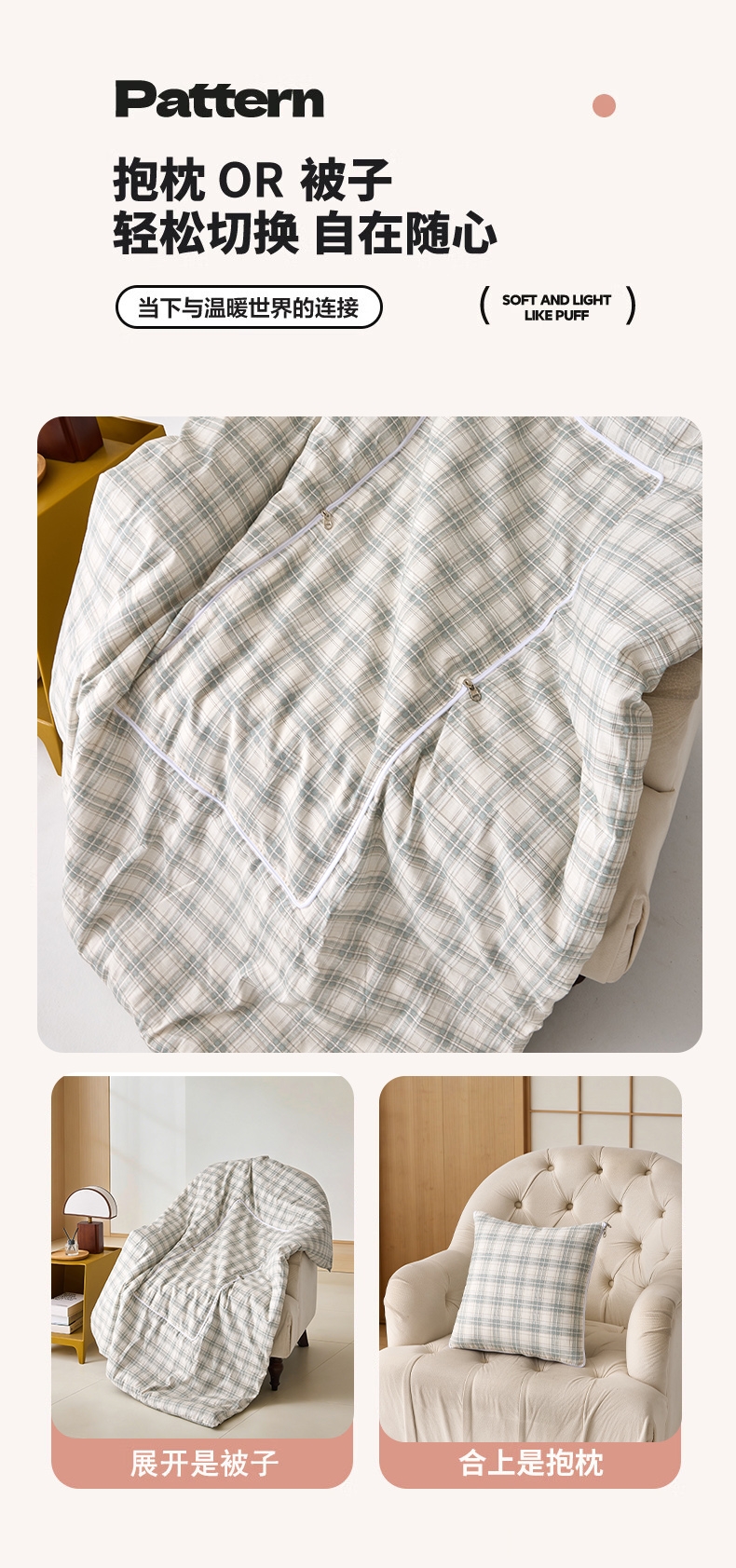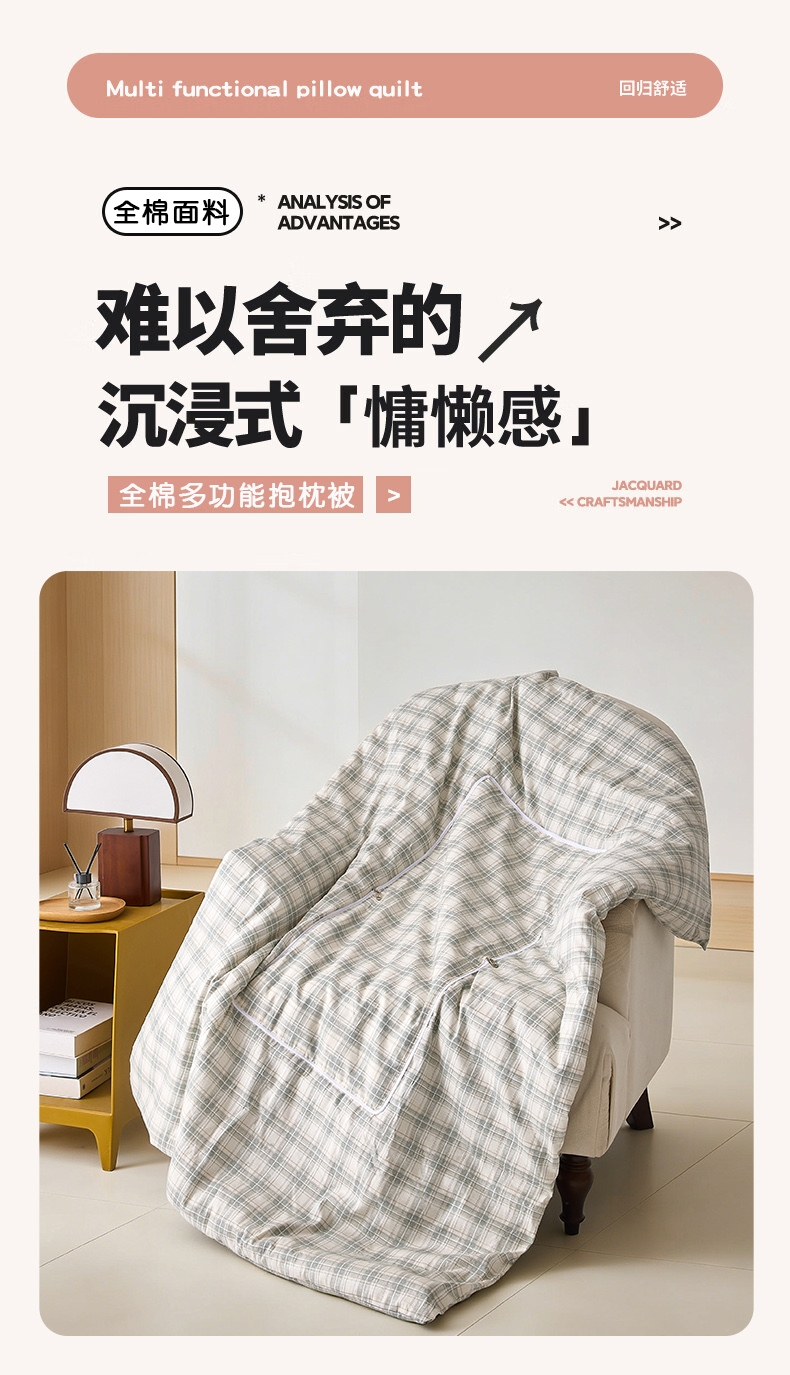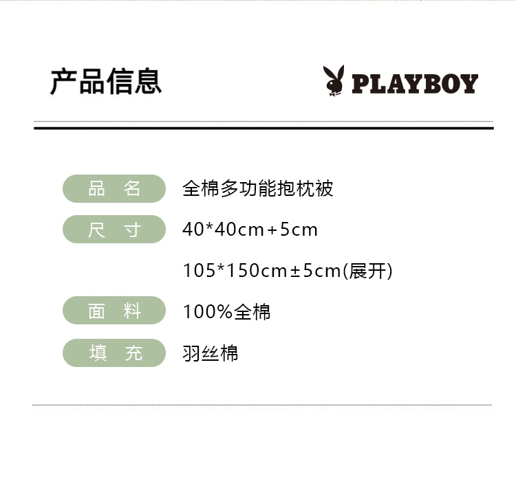 花花公子 全棉多功能抱枕被
