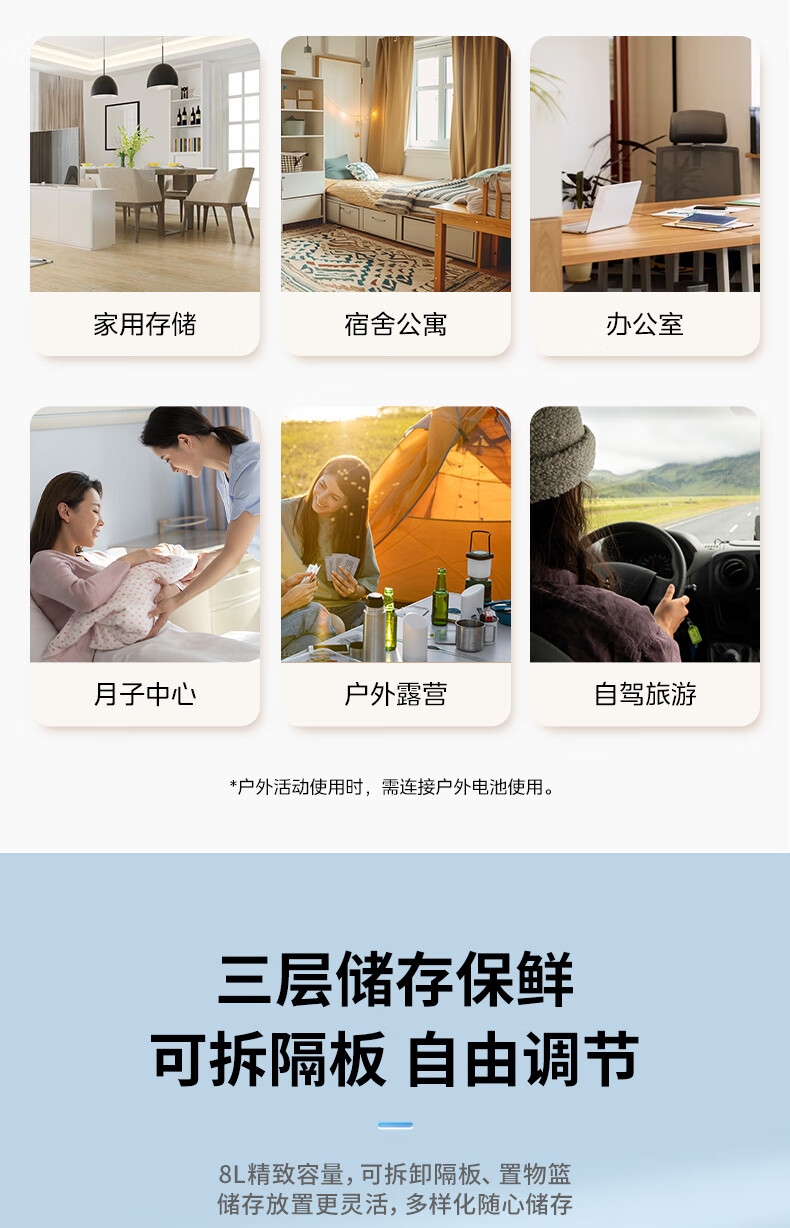 小巧便携:重量轻、体积小;环保材质,配隔板+置物篮;低噪音:≤40dB轻音相伴,安静不打扰