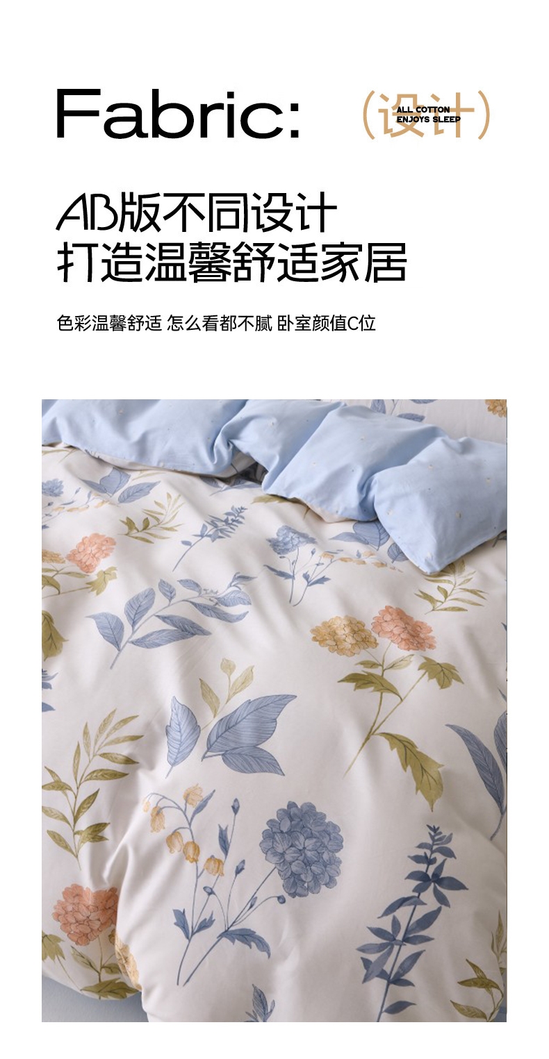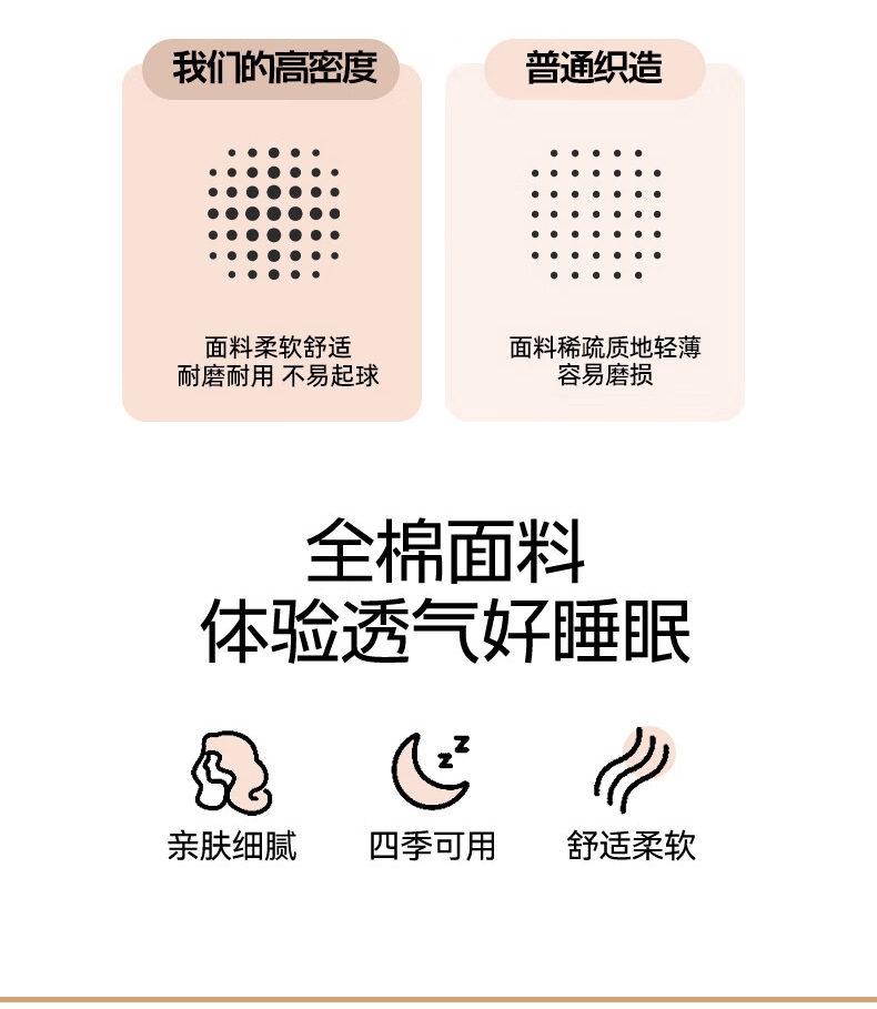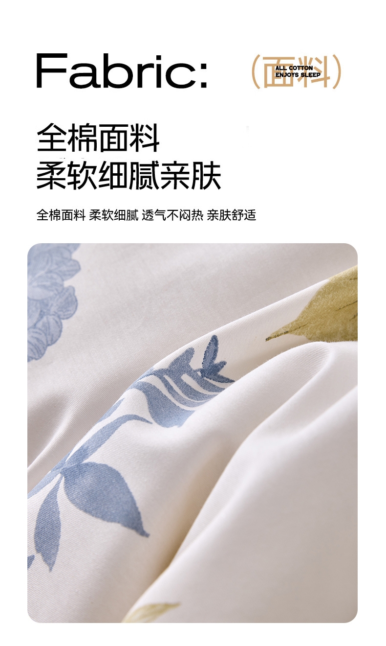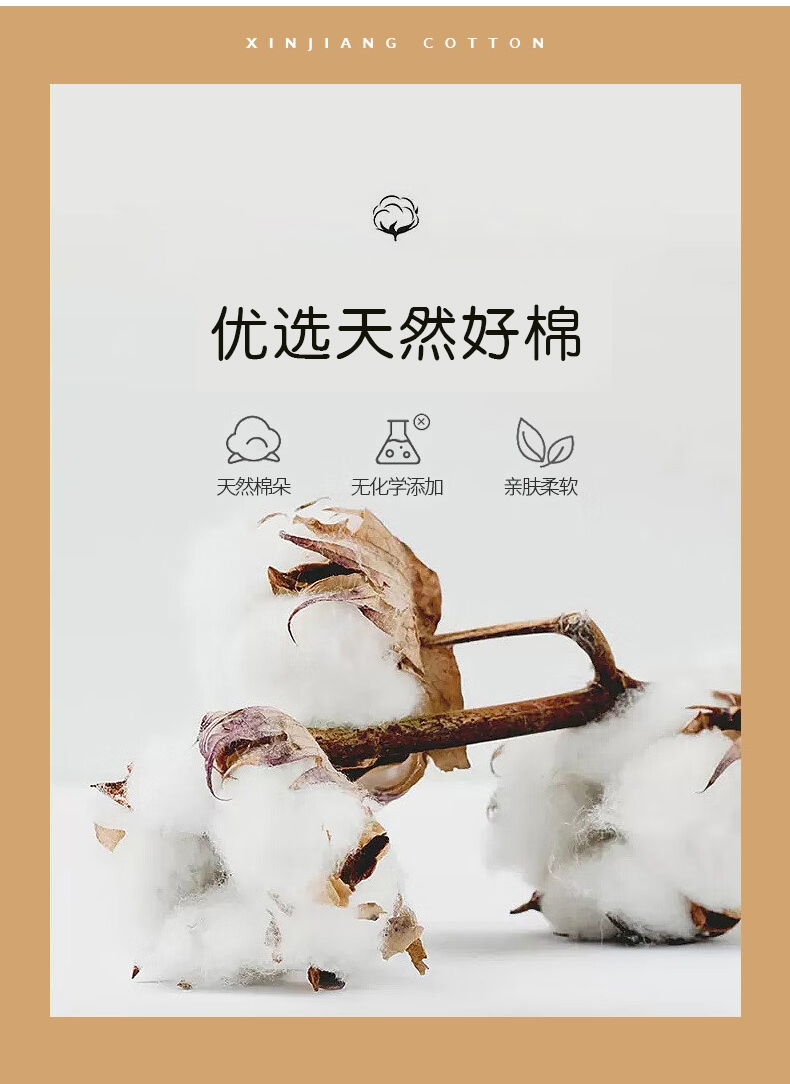 臻选纯棉面料,印染工艺采用活性印染工艺;增加了精致梳理的程序,疏去软短的纤维;纯棉纤维具有良好的保湿型,透气性能好