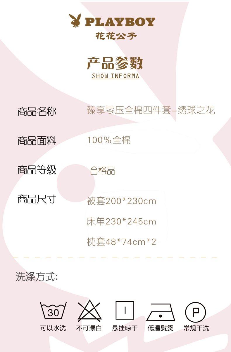 花花公子 臻享零压全棉四件套绣球之花PB-25YZ126