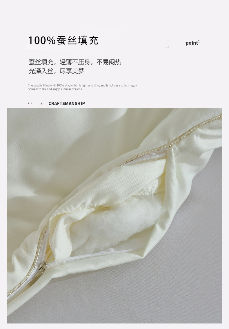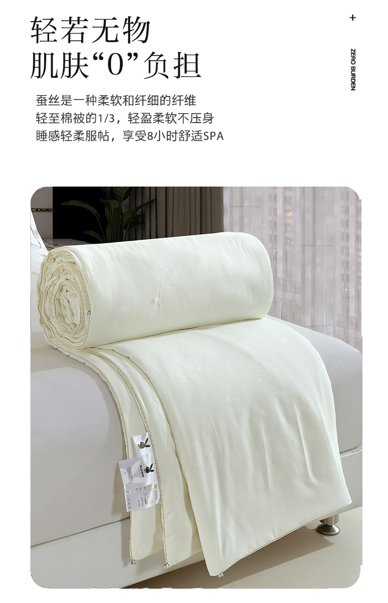 蚕丝的多孔隙结构,自带呼吸感;能够使被芯内温度保持舒适,更适合东方人的睡眠环境;可以让人更好入睡,睡得更舒服。