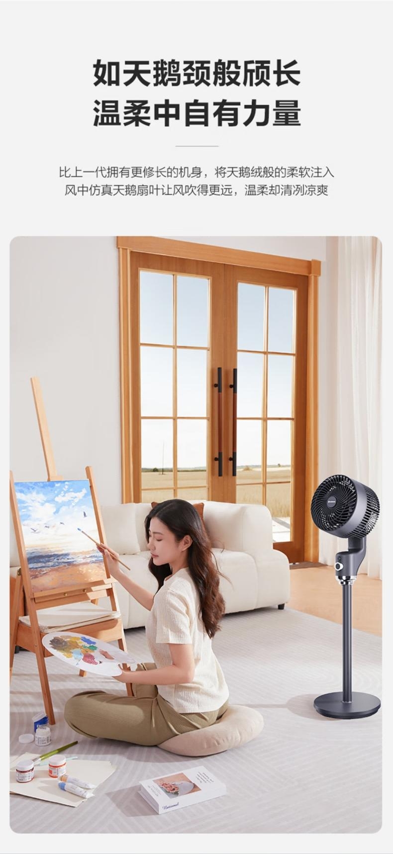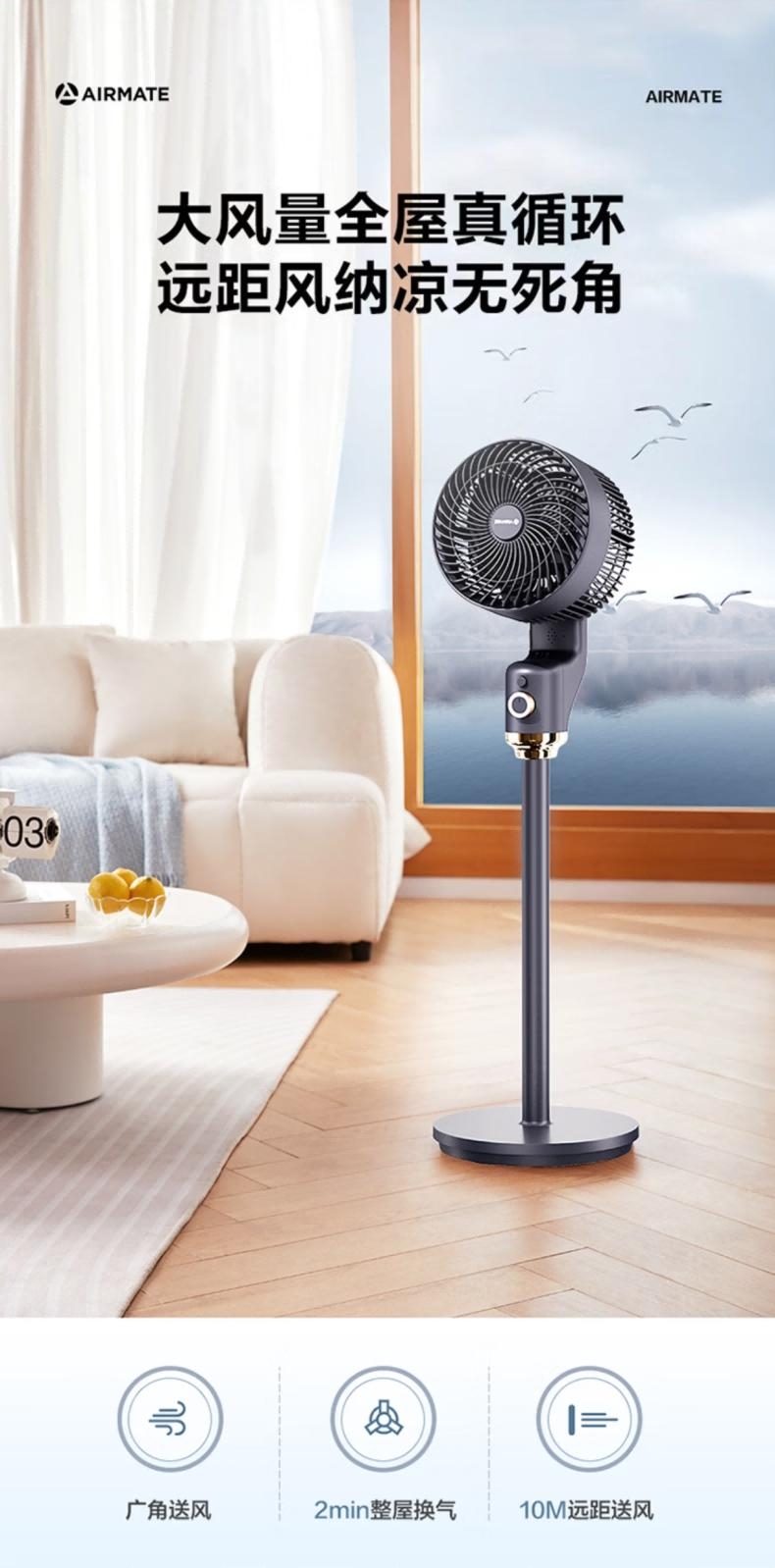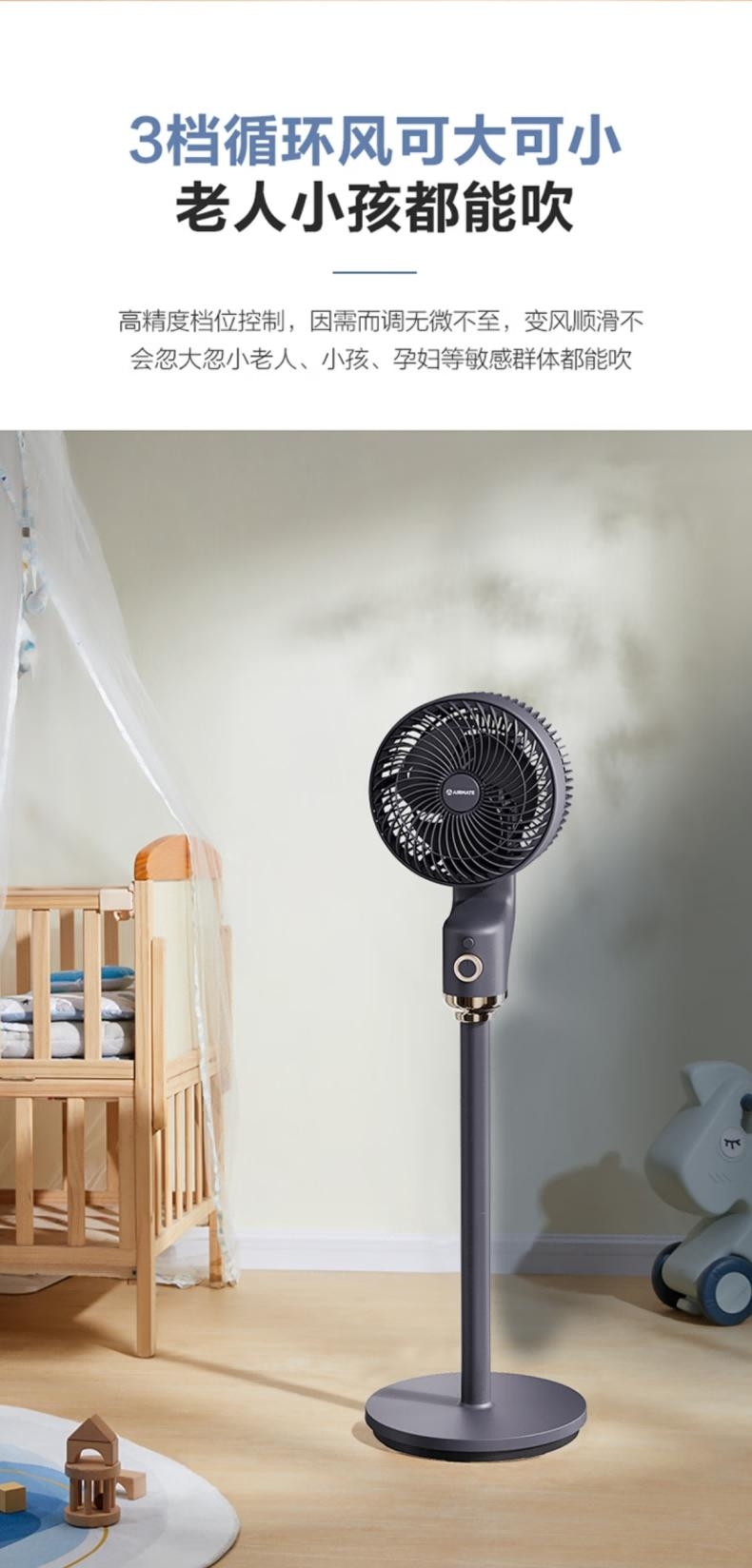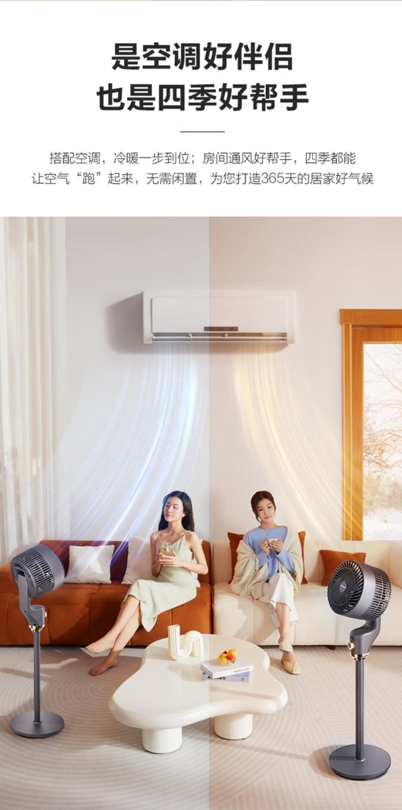 台地两用,灵活适配:自由拼接杆,加高至约108cm;全自动摆头,广角循环;香薰+驱蚊,一机多用;3档风力可调,柔风不直吹;循环扇结构,远距送风+全屋对流,快速平衡室温