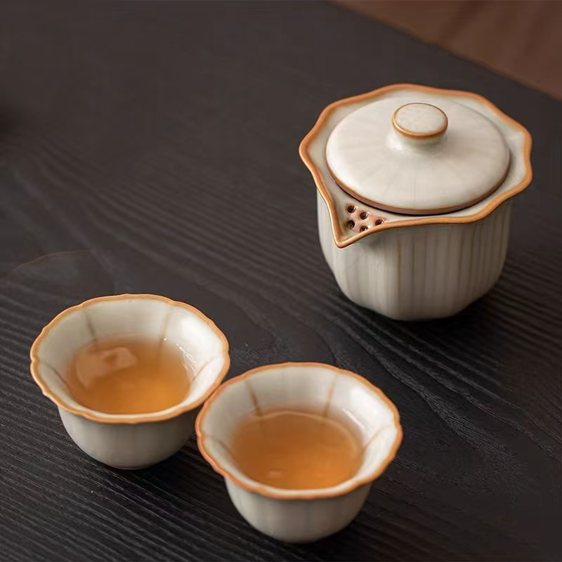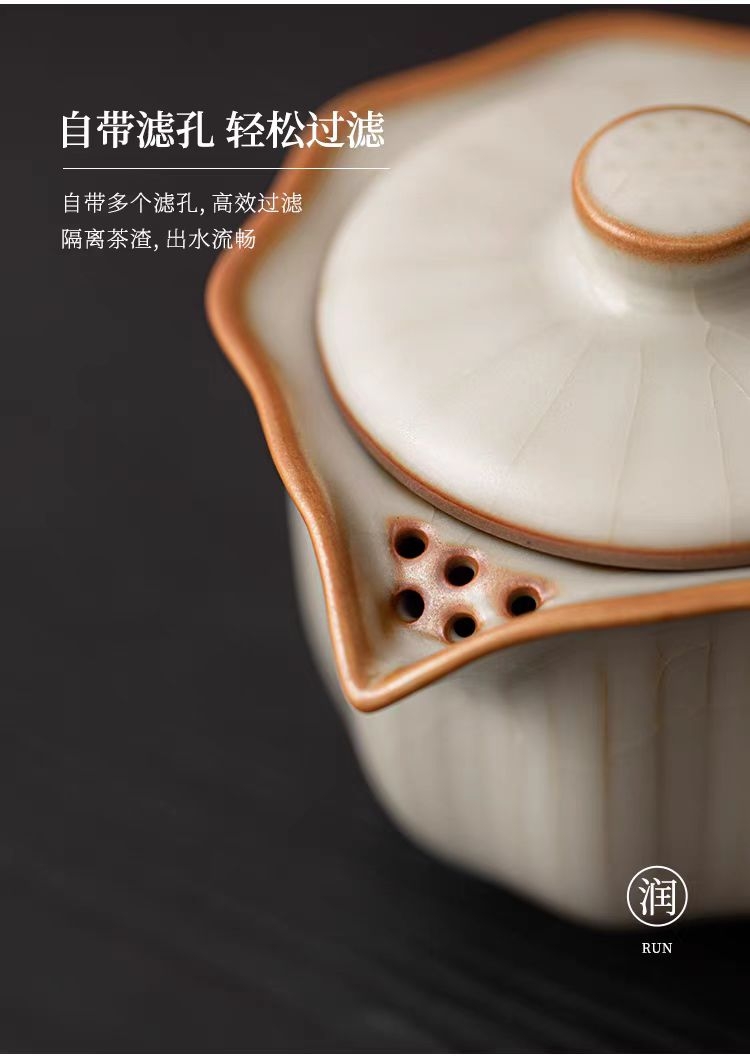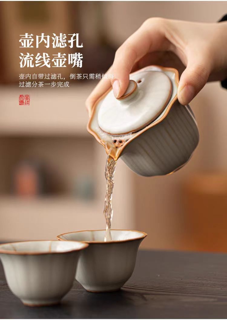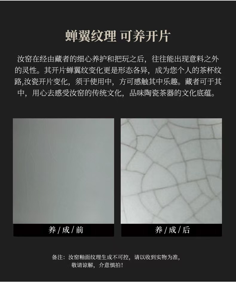 亚黄汝瓷,玛瑙入釉,蝉翼开片;家有千财万贯,不如汝窑一片。独家专利技术新品;采用高价优质瓷土,紫口铁足,瓷质高档。立体浮雕杯身