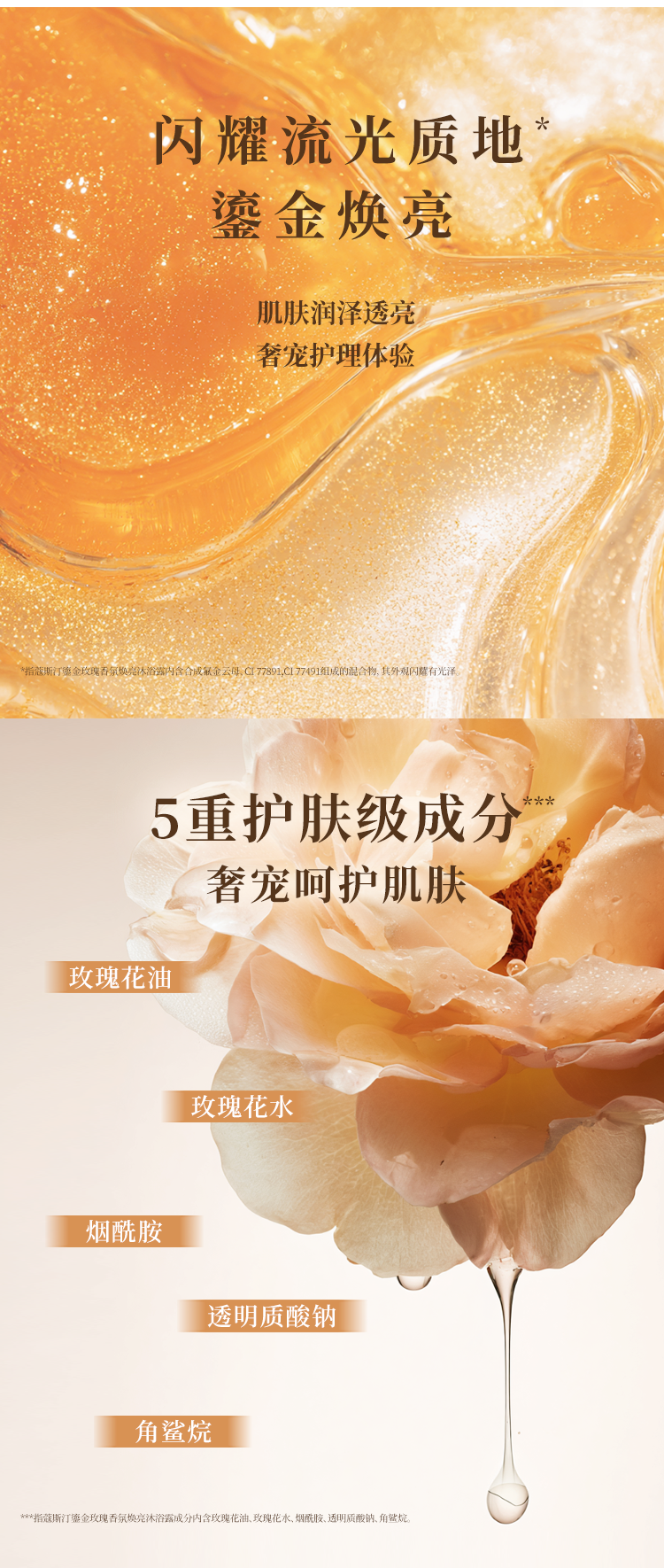 闪耀流光质地 鎏金焕亮;5重护肤级成分 奢宠呵护;控油蓬松 羽感轻盈