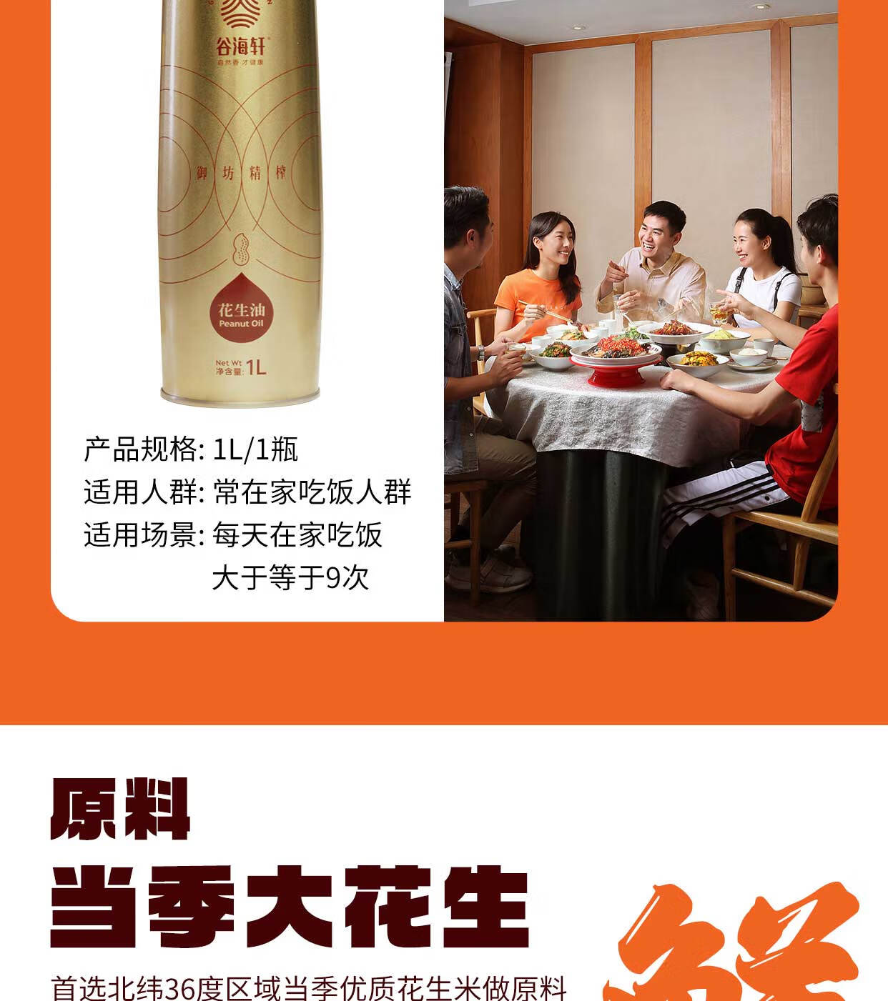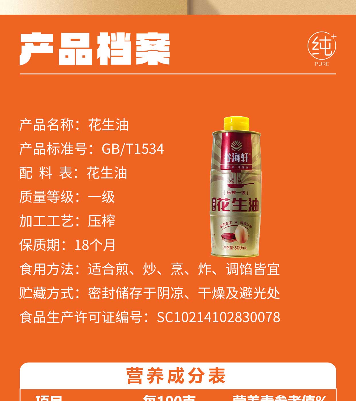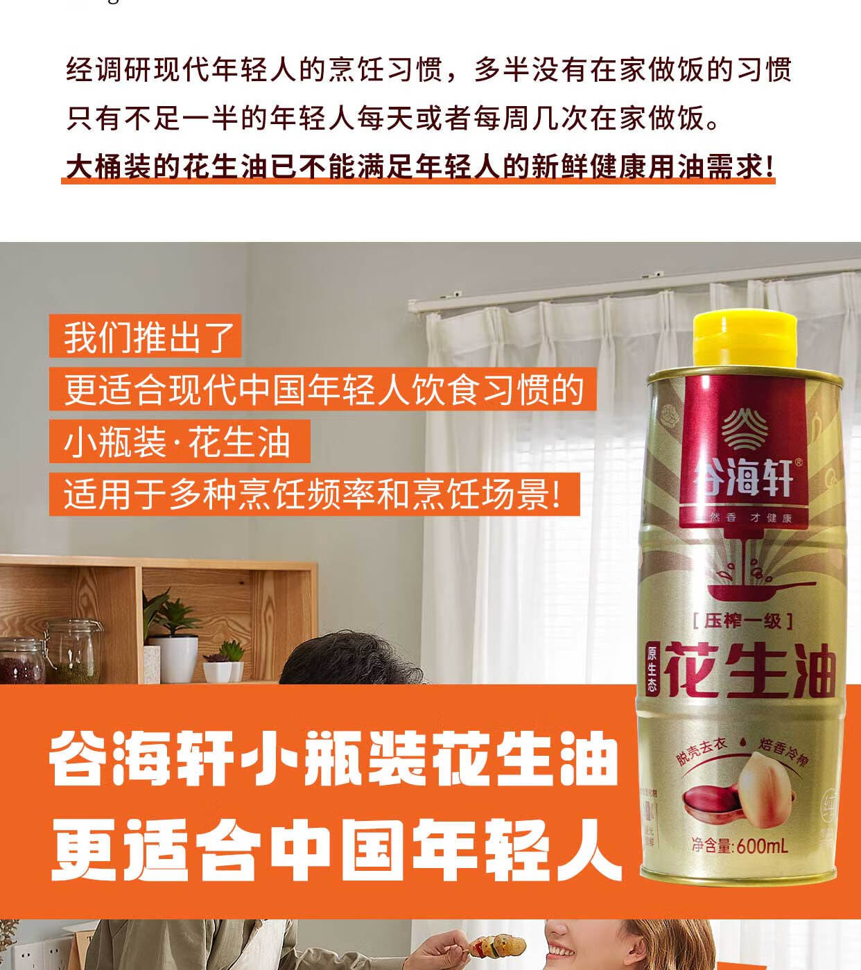 谷海轩 纯物理压榨花生油600ML
