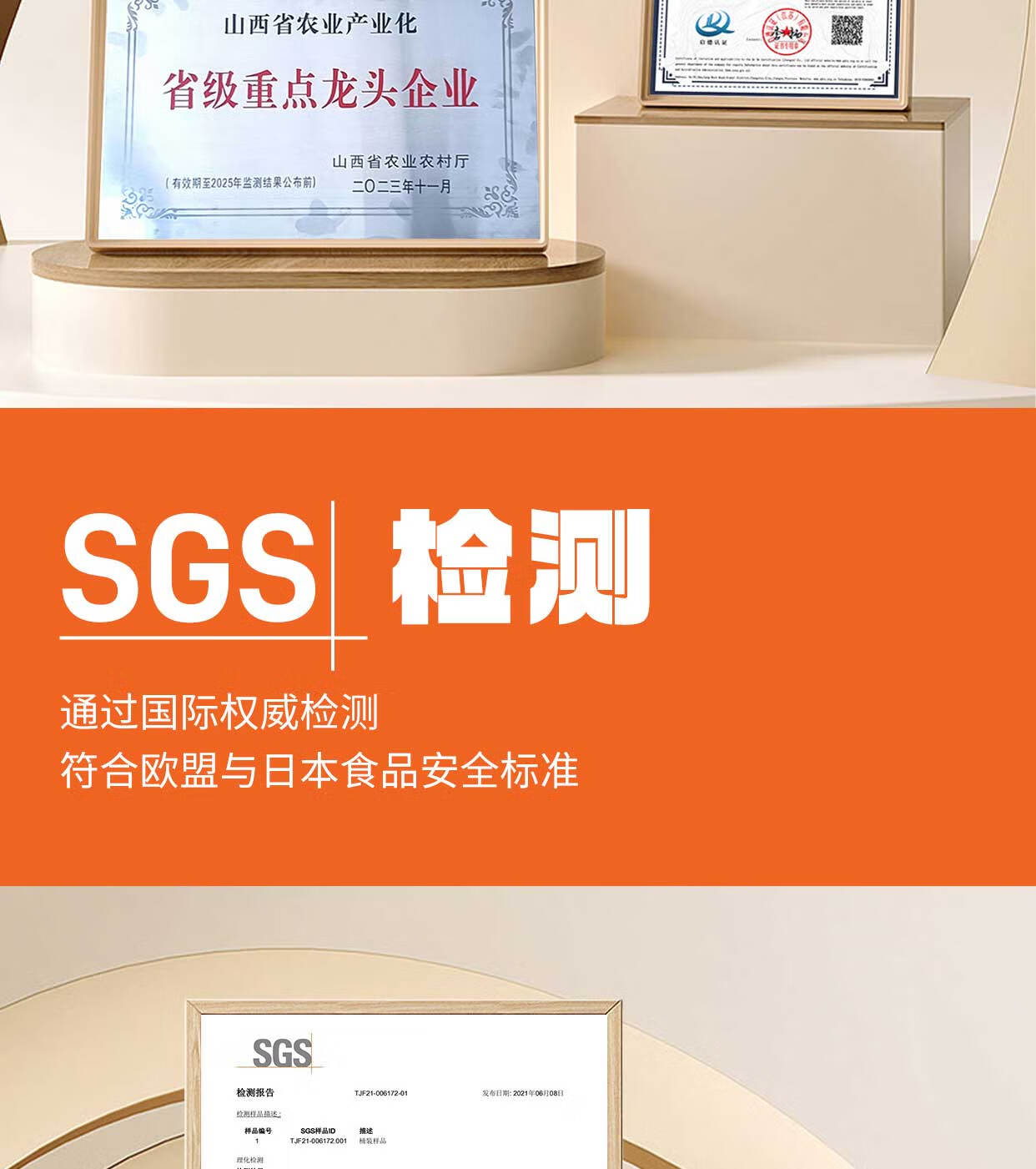 通过SGS检测认证,符合出口欧盟、日本的标准;包装采用婴幼儿奶粉级包装材质的马口铁包装;纯物理压榨、无任何添加