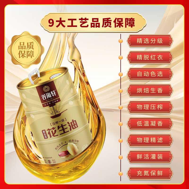 谷海轩 纯物理压榨浓香花生油2.5L厨房家庭炒菜烹饪纯正食用油实惠
