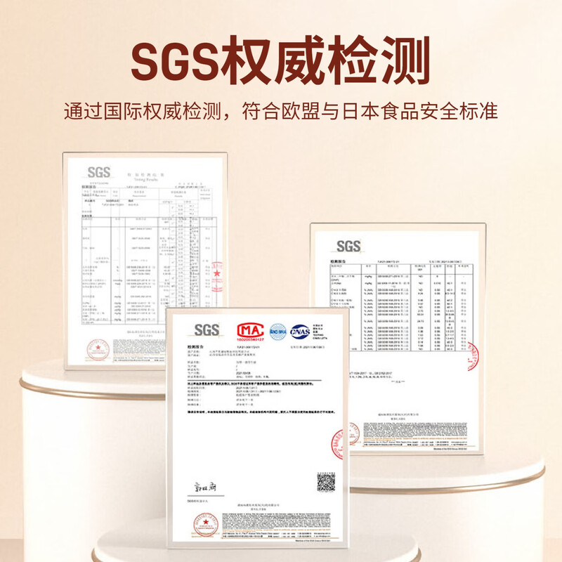 通过SGS检测认证,符合出口欧盟、日本的标准;包装采用婴幼儿奶粉级包装材质的马口铁包装 ;纯物理压榨、无任何添加