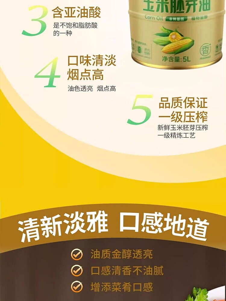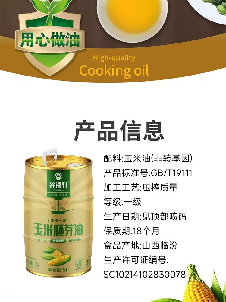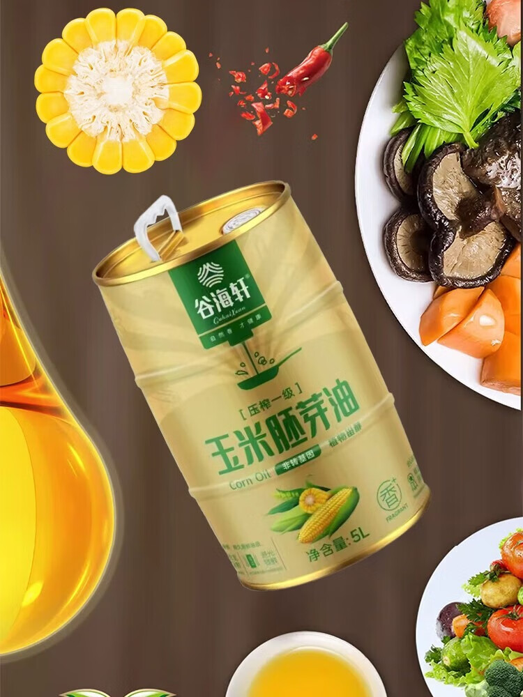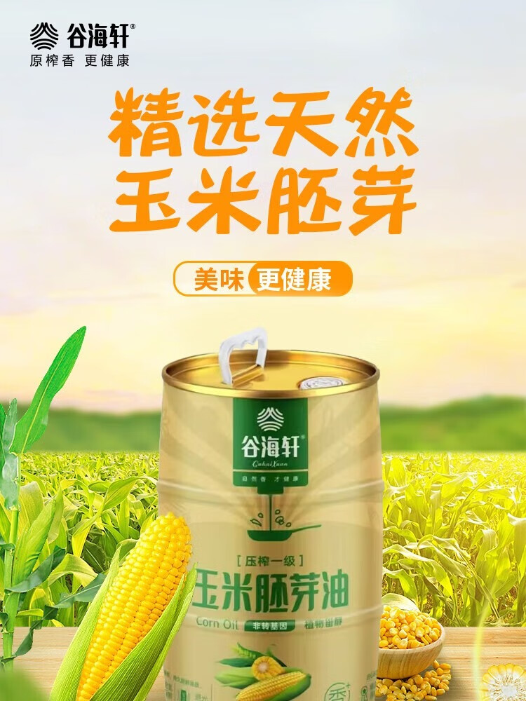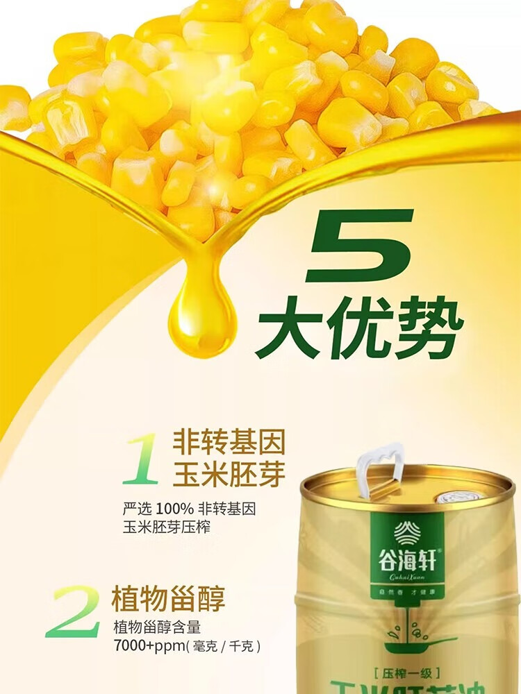 谷海轩 原生态纯物理压榨玉米胚芽油5L浅黄色