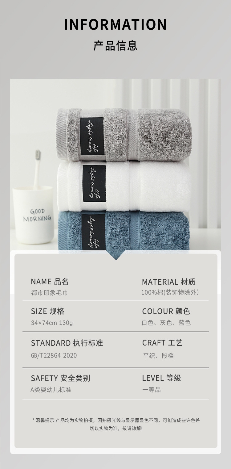 奥来纯 A类纯棉都市印象毛巾130g