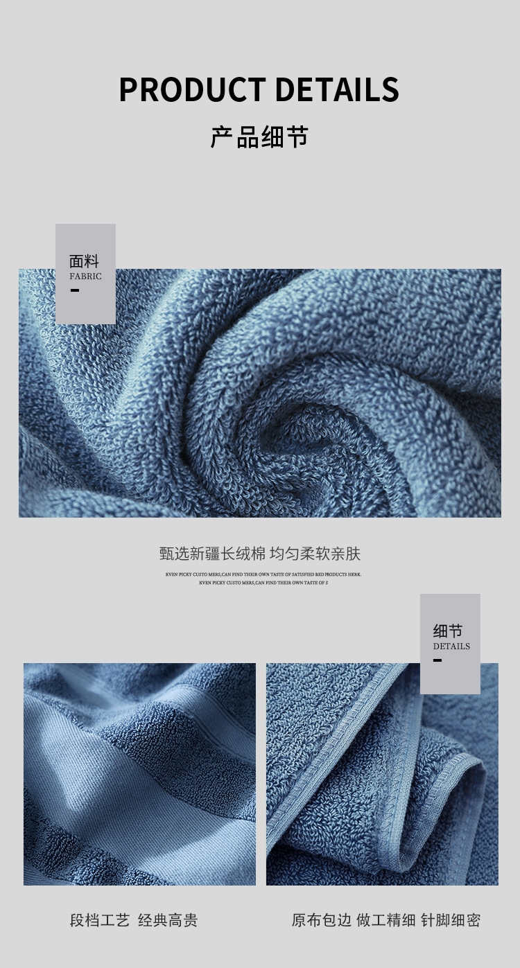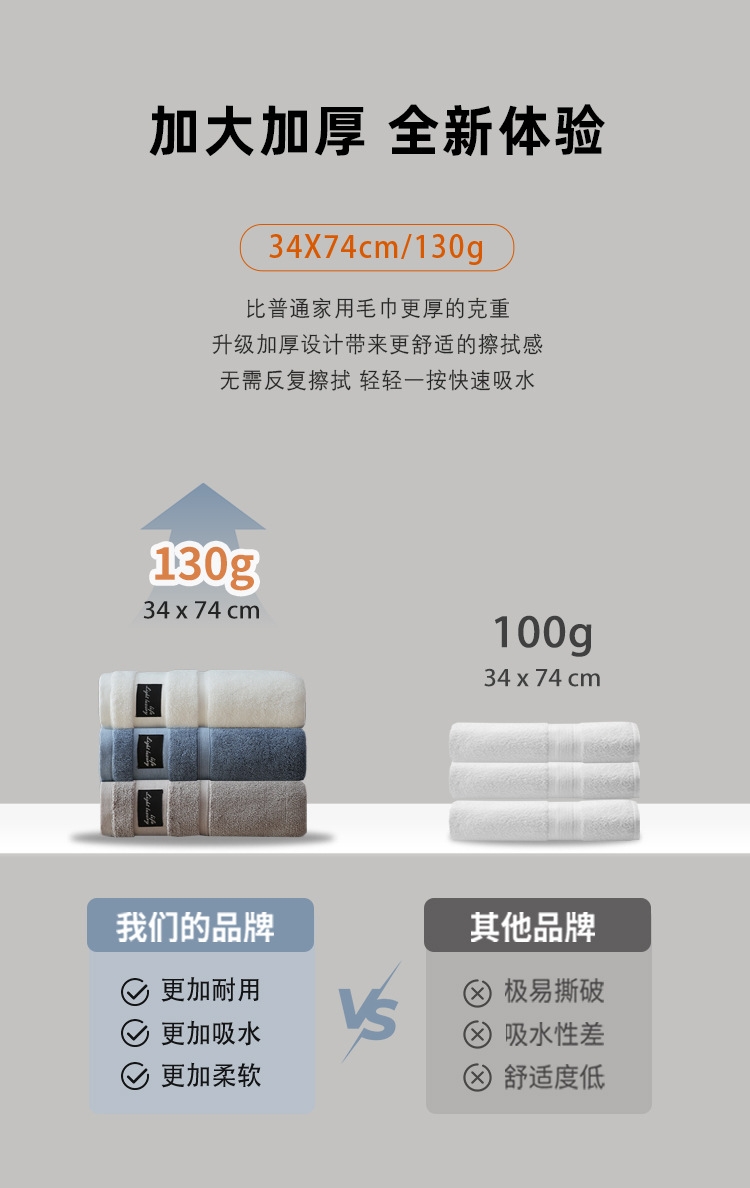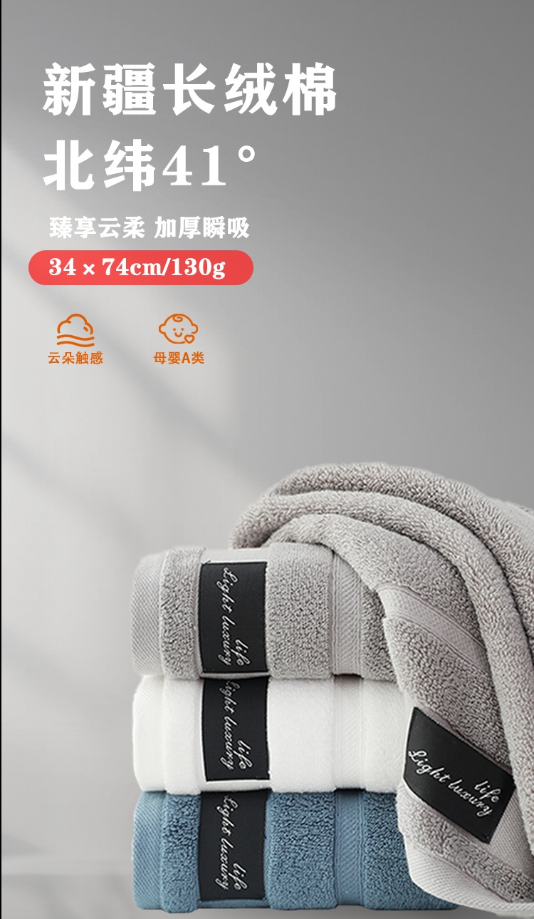 细腻柔软,亲肤不糙;吸水透气,干爽舒适;紧实耐用,不易掉毛