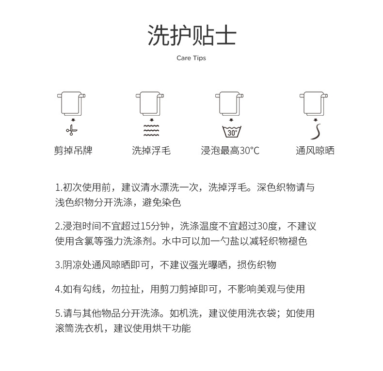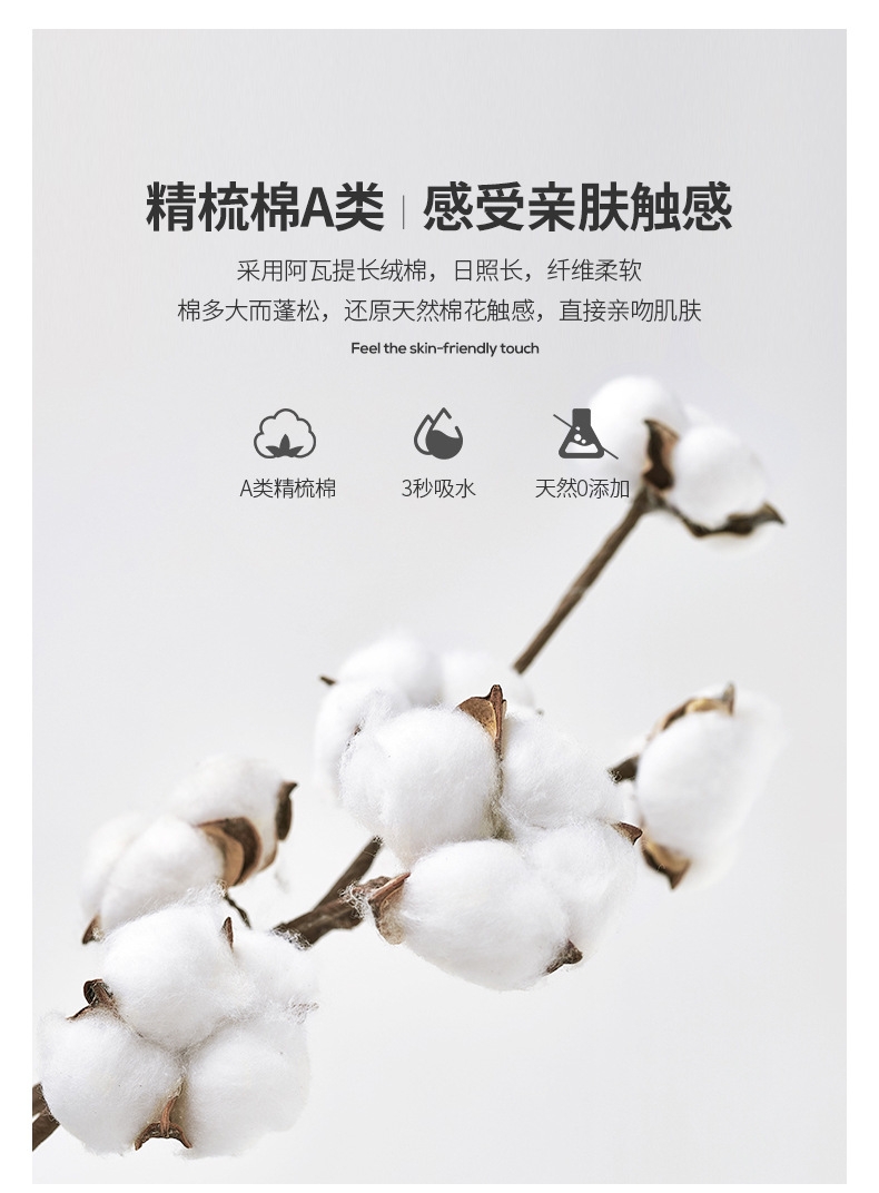 细腻柔软,亲肤不糙;吸水透气,干爽舒适;紧实耐用,不易掉毛