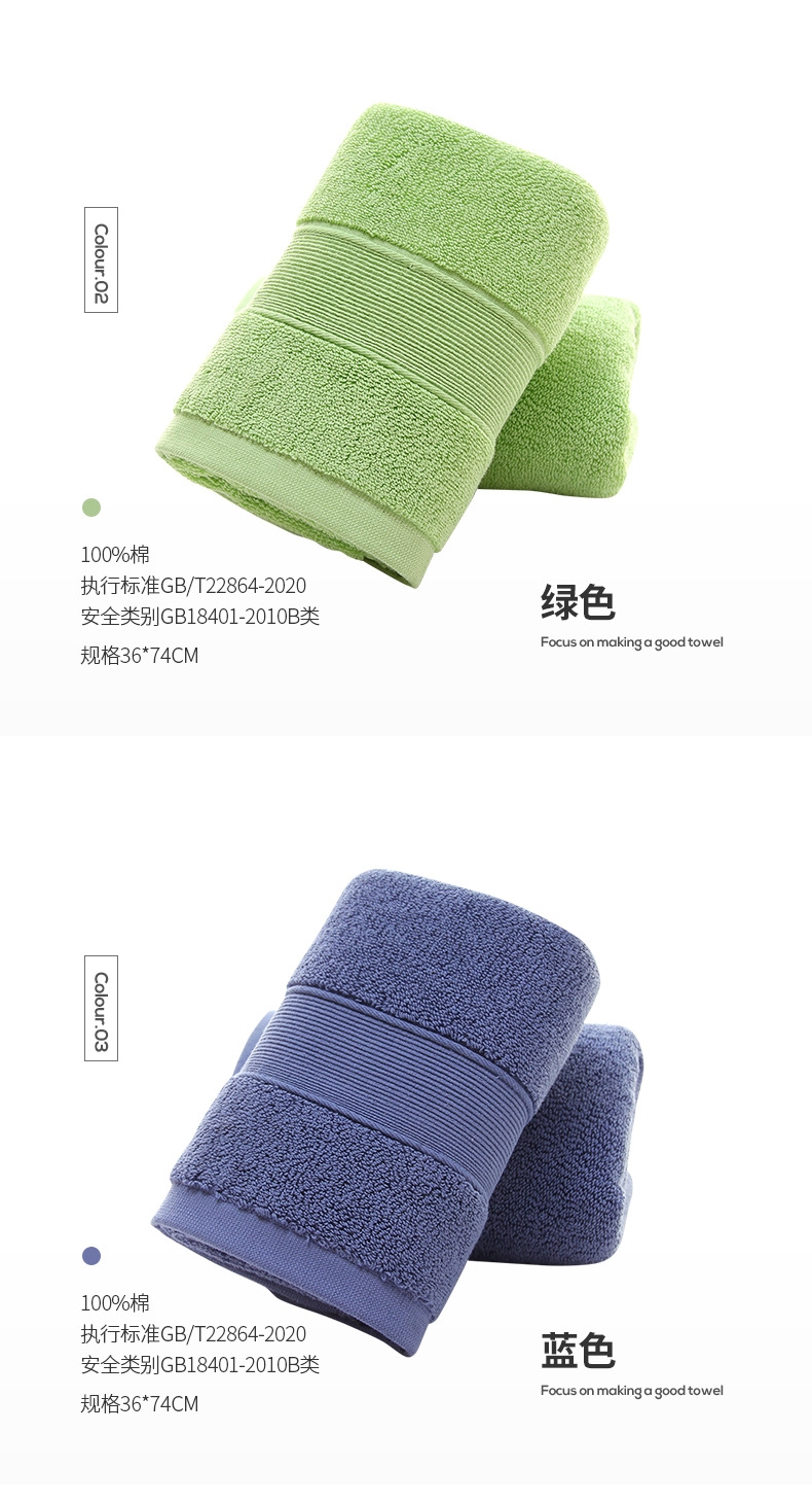 细腻柔软,亲肤不糙;吸水透气,干爽舒适;紧实耐用,不易掉毛