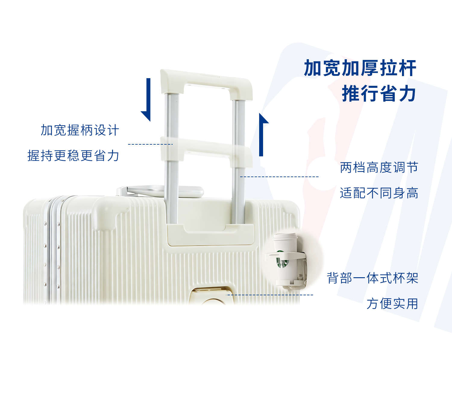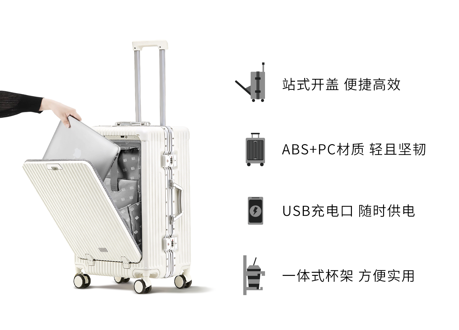 旅行包:轻奢复古防泼水PU,采用仿尼龙织带和五金配;行李箱:站式开盖设计背部杯架座、铝框 + 竖纹抗摔;行李箱:便捷挂钩设计、USB充电口,让旅行不再有压