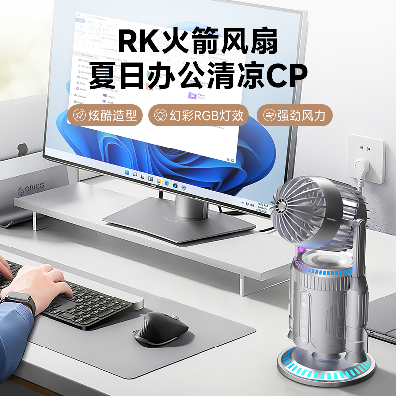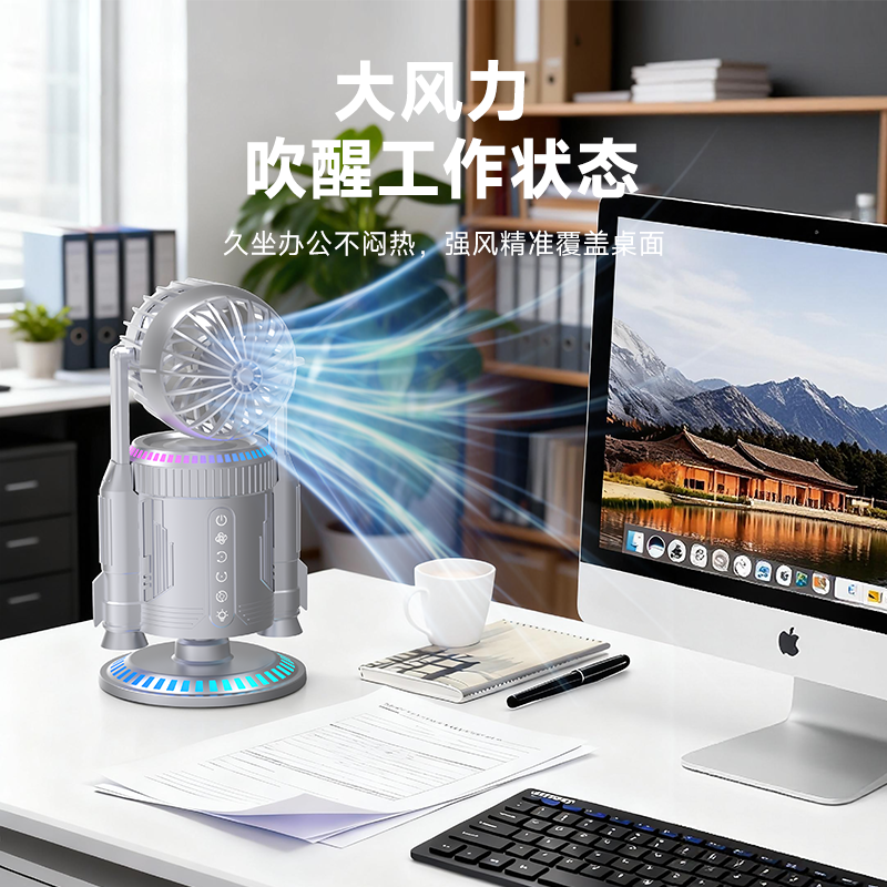 距离聚风循环,凉意直达屏幕,大范围覆盖桌面;多档位精准调速,柔风静音 / 狂暴劲风自由切换;定向聚焦送风,直吹手部键鼠区域,久战不闷汗