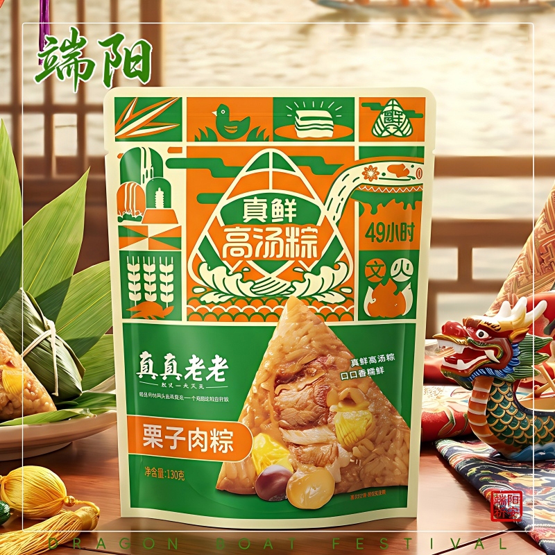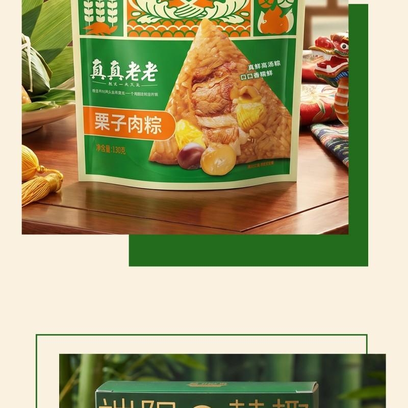 组合:端午经典绿茶2g*2袋、端午香片(白茶香)*1、真真老老栗子肉粽130g*1袋