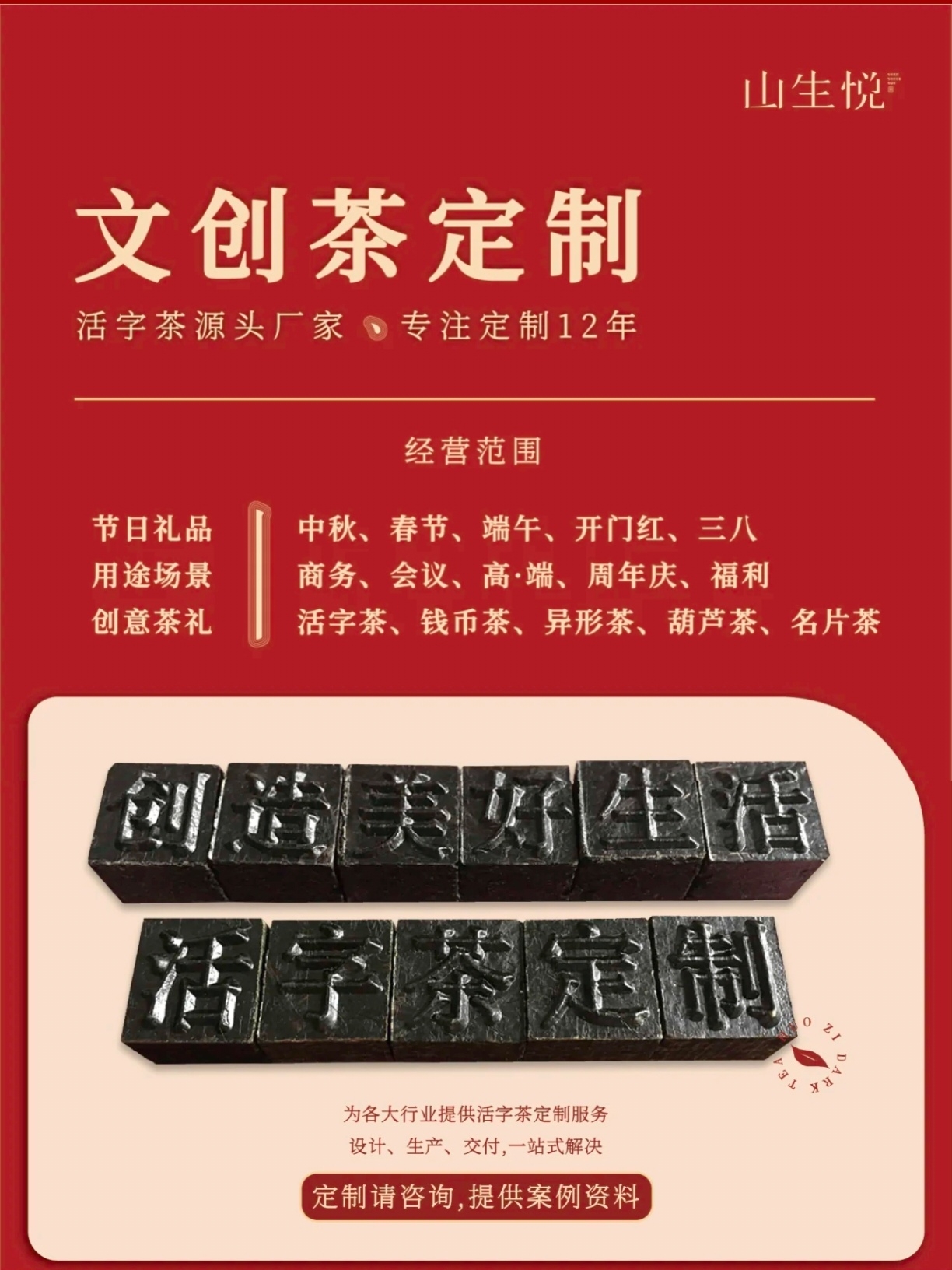 山生悦 端午节商务礼品伴手礼活字茶黑茶