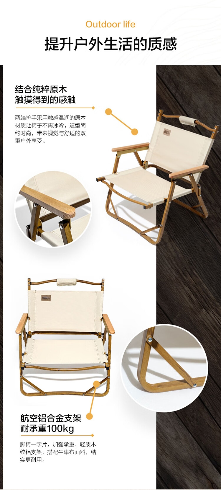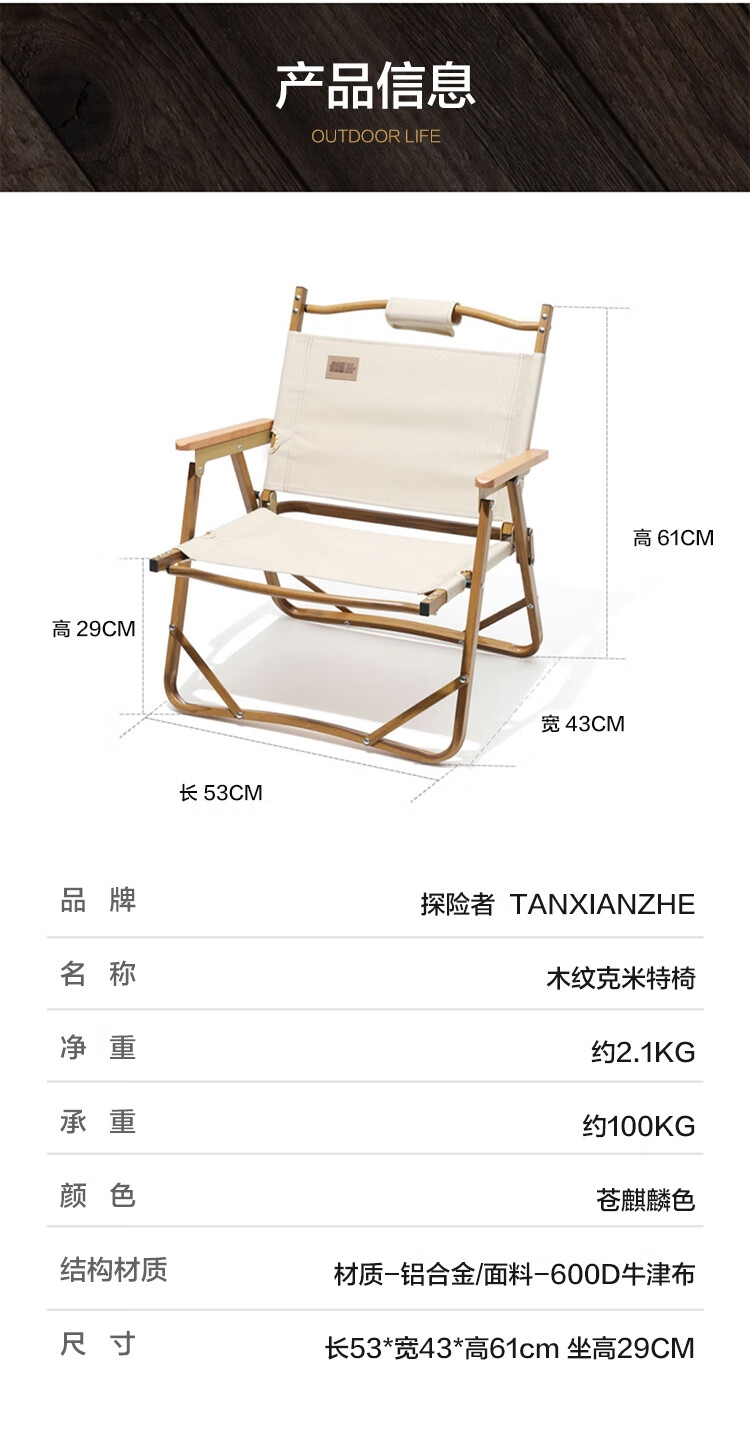 探险者 TAN XIAN ZHE户外木纹克米特椅TXZ-0516KMTY