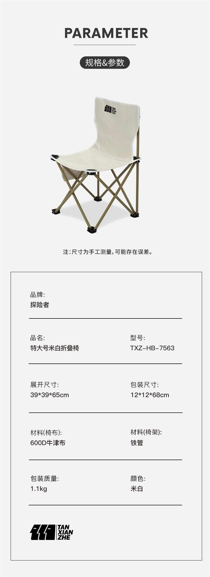 探险者 TAN XIAN ZHE特大号米白折叠椅TXZ-HB-7563