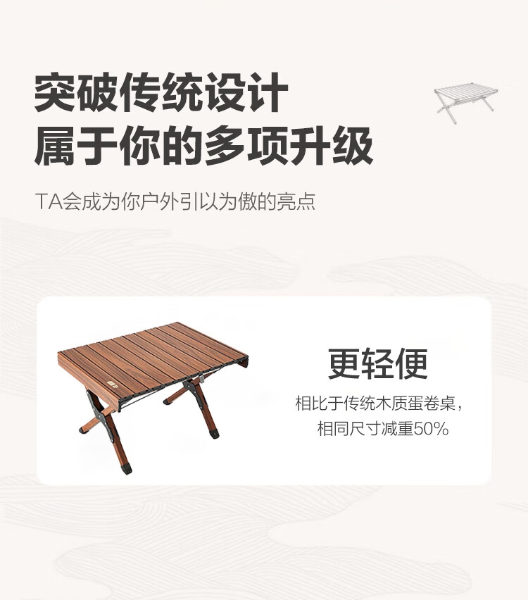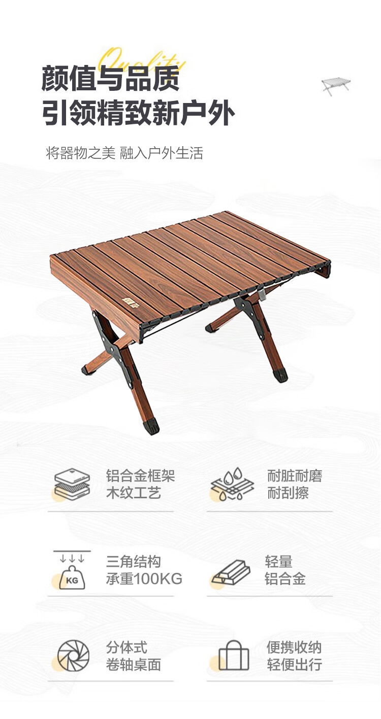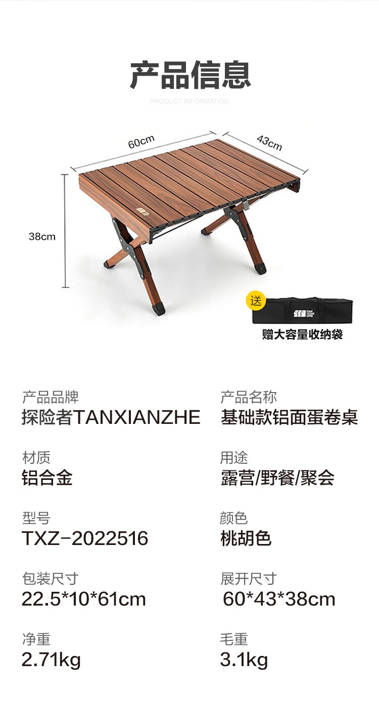 探险者 TAN XIAN ZHE户外 铝面蛋卷桌原木色TXZ-2022516