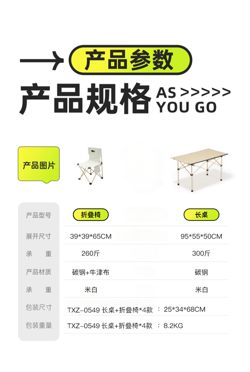 探险者 TAN XIAN ZHE米白色碳钢折叠五件套TXZ-0549