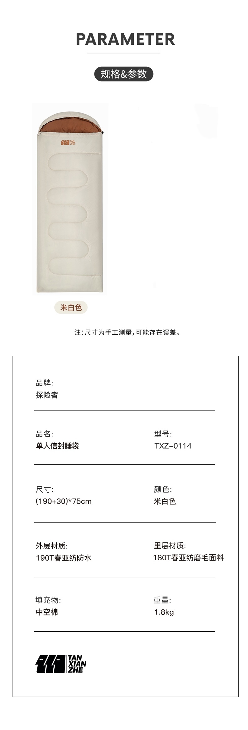 探险者 单人信封睡袋1.8KG TXZ-0114