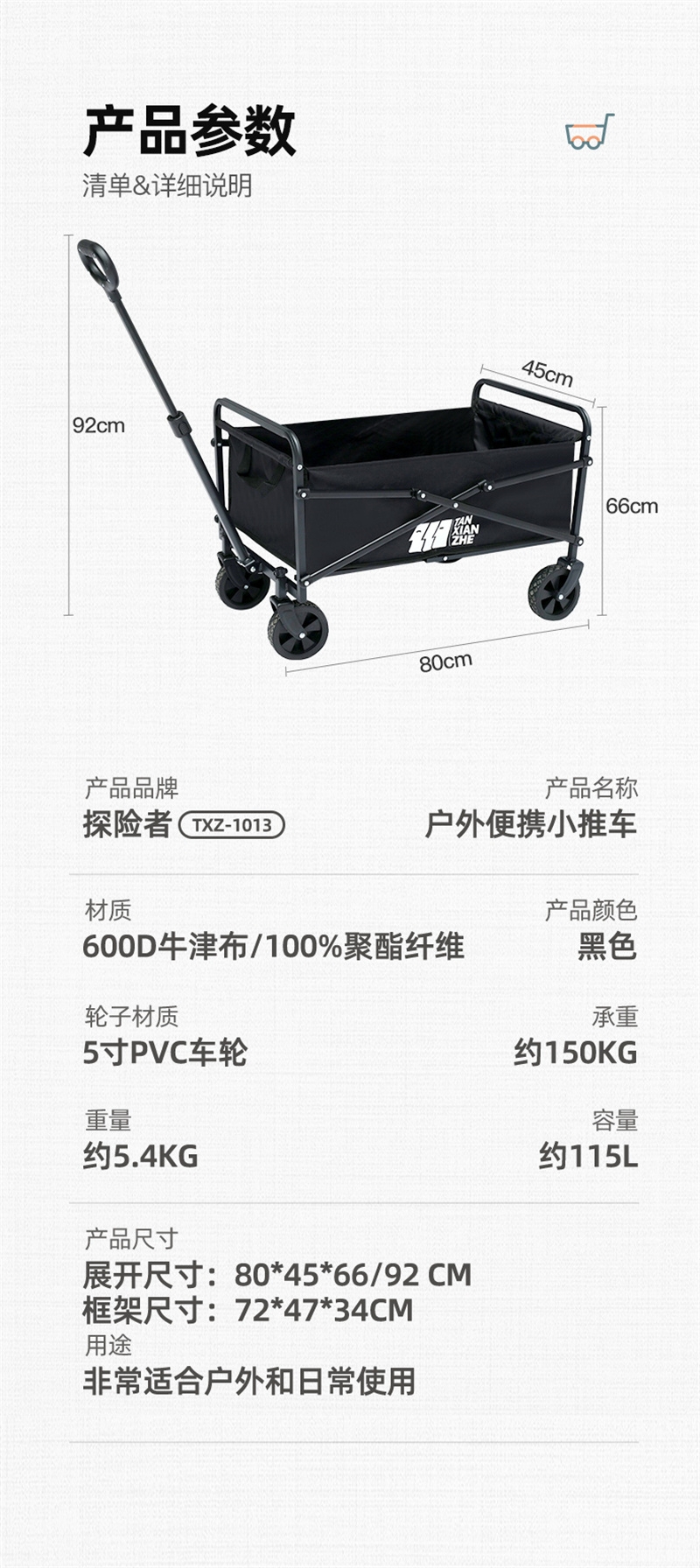 探险者 TAN XIAN ZHE户外便携小推车白色 TXZ-1013