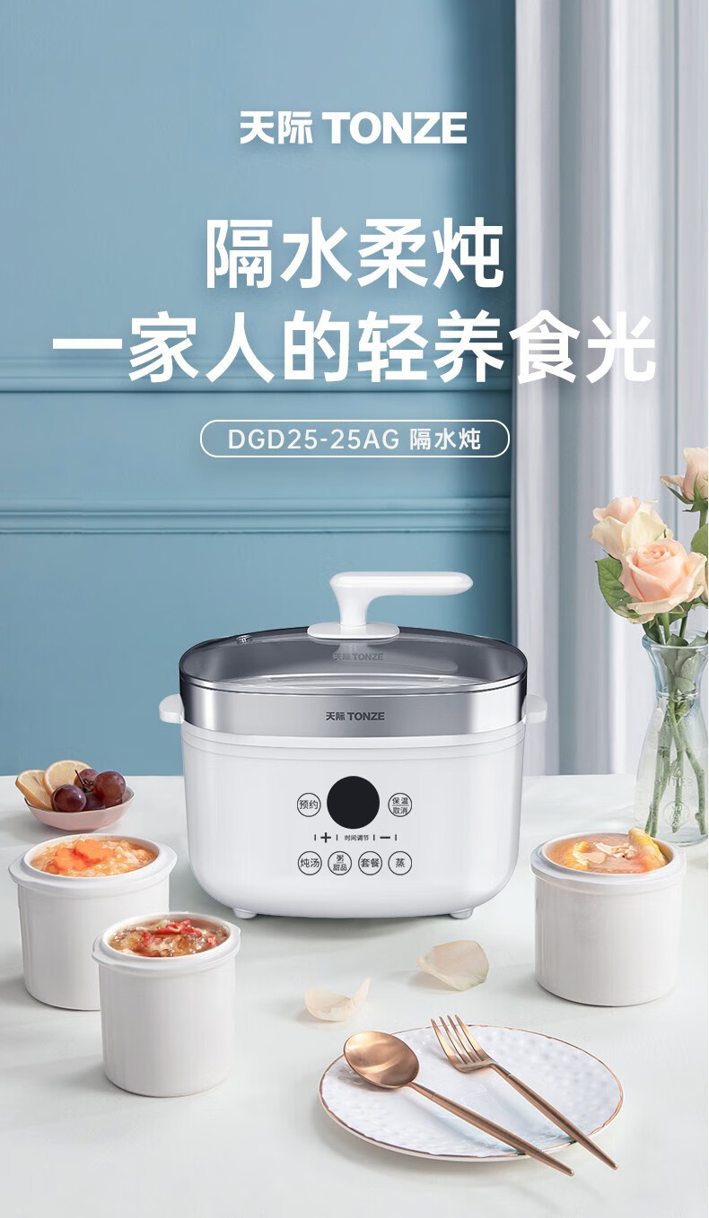 天际 电炖锅电炖盅陶瓷炖煲汤锅隔水炖DGD25-25AG