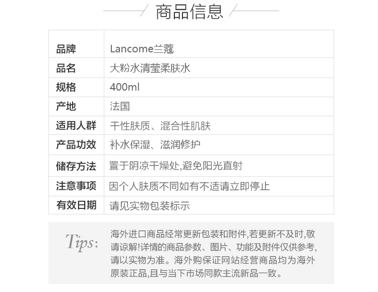 兰蔻 全新清滢保湿柔肤水400ml