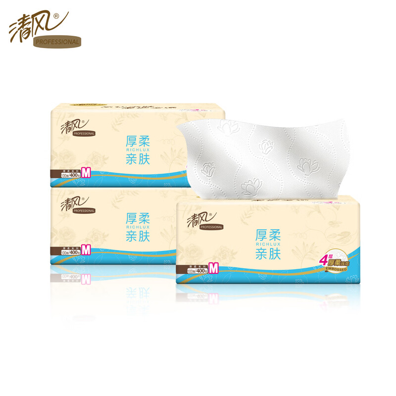 清风 厚柔M码抽纸100抽*3包