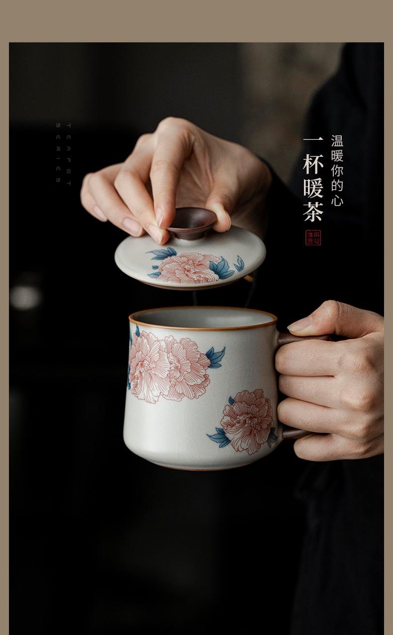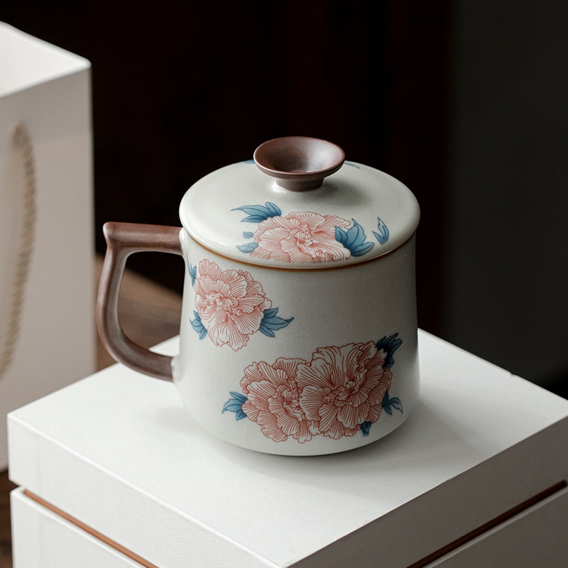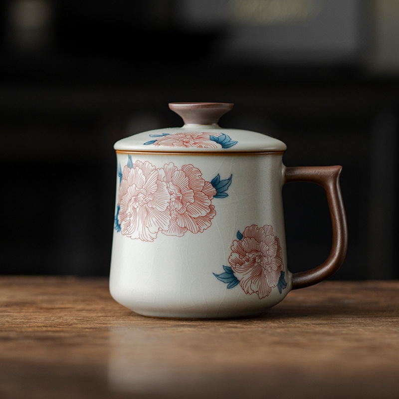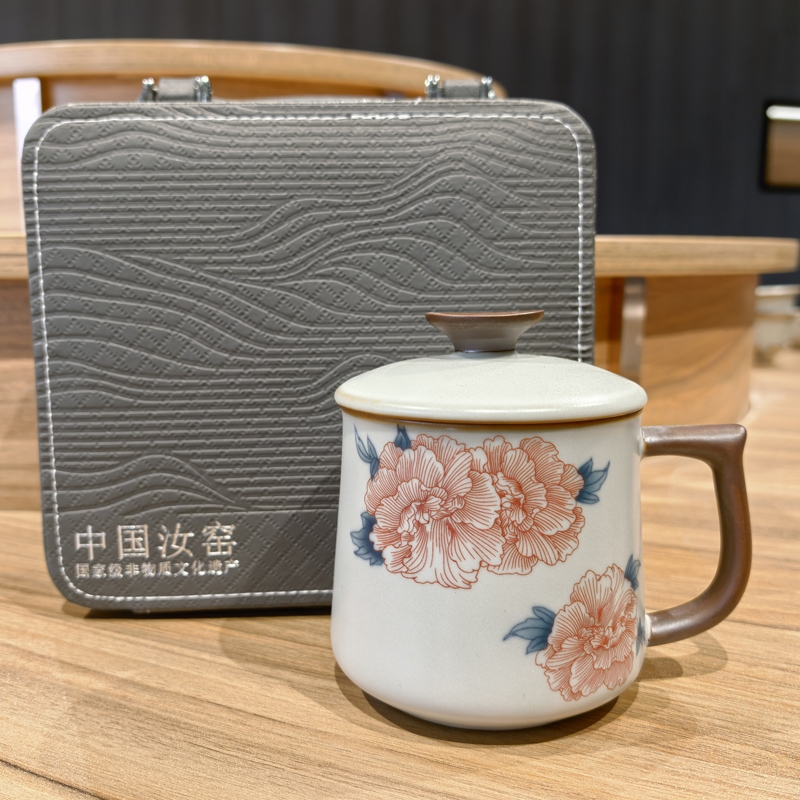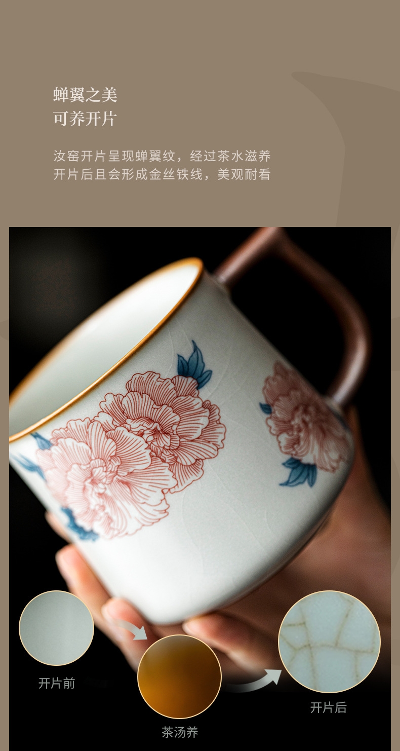 花开富贵亚黄汝窑办公杯