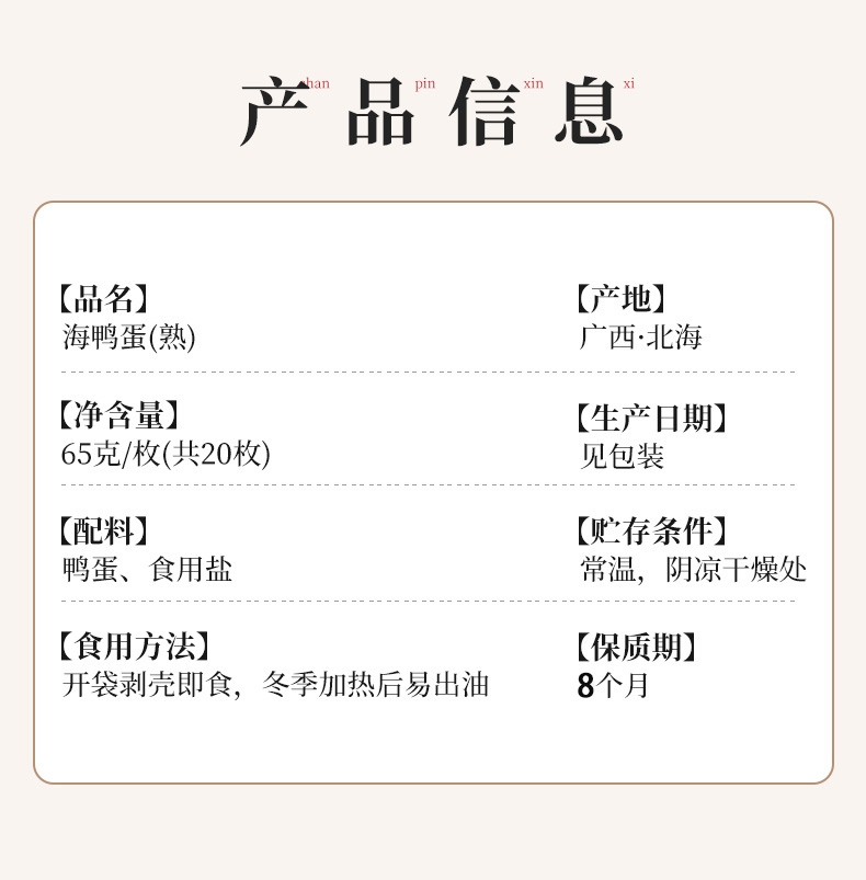 丁山河 一乡一品 红树林海咸鸭蛋65克*20枚