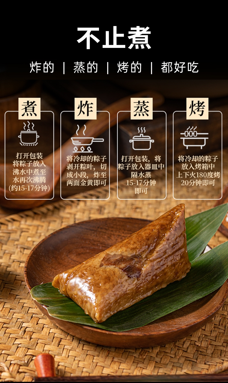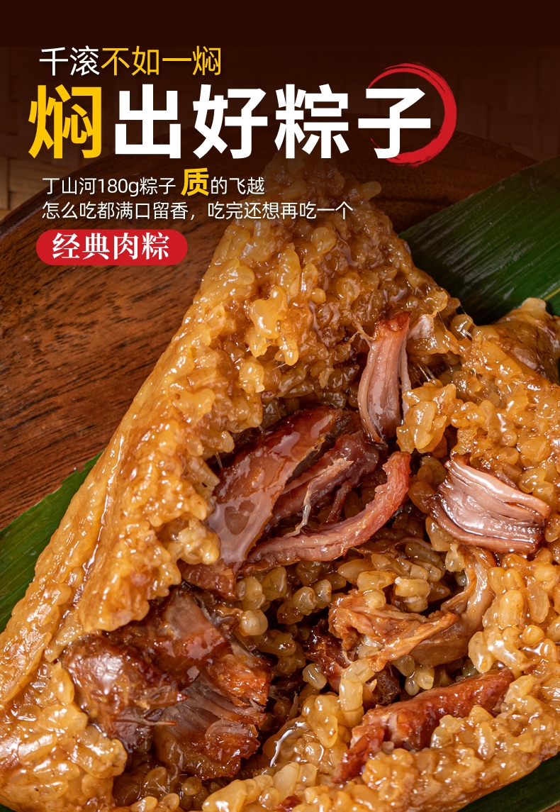 配置清单:180克*1东坡肉鲜筒粽 180克*1梅干菜扣肉鲜筒粽 180克*1桂花豆沙鲜筒粽 180克*1乌米原味鲜筒粽 180克*1蛋黄肉鲜筒粽