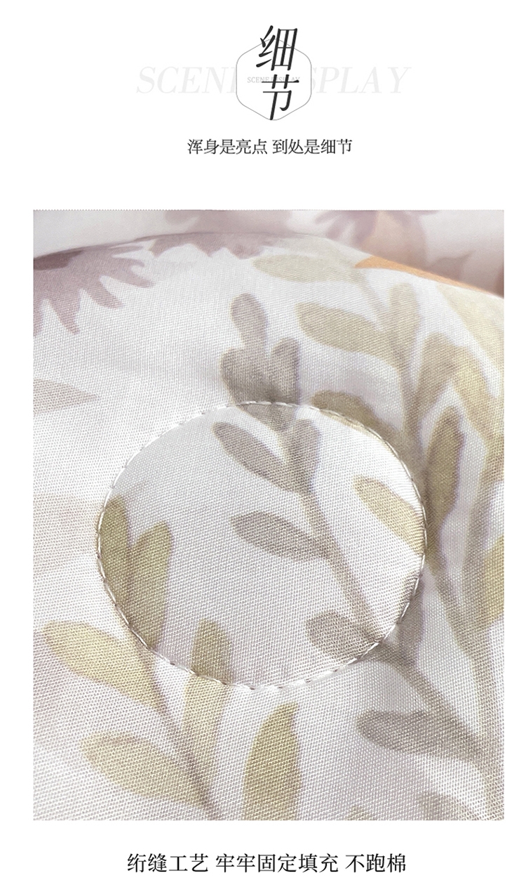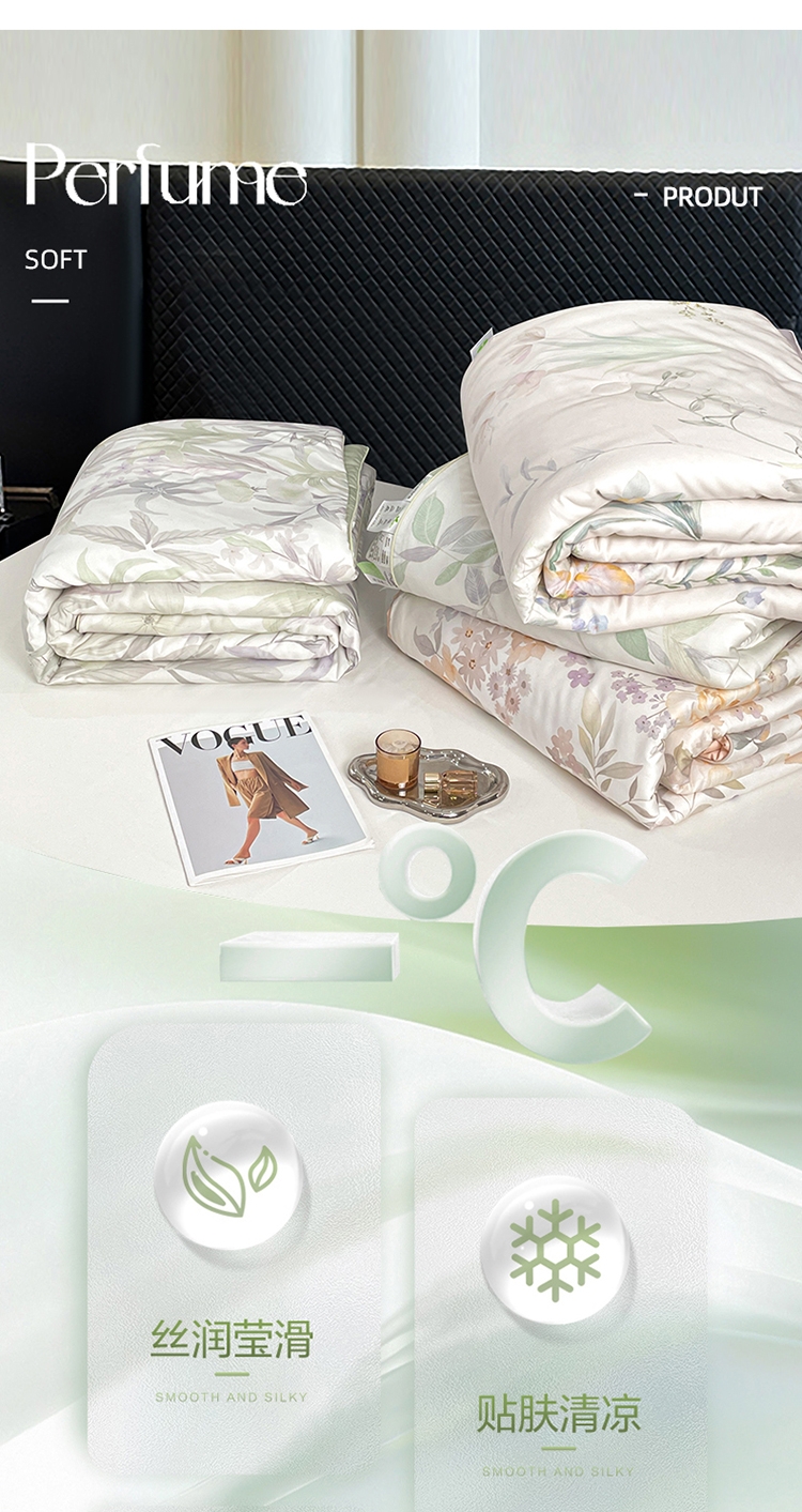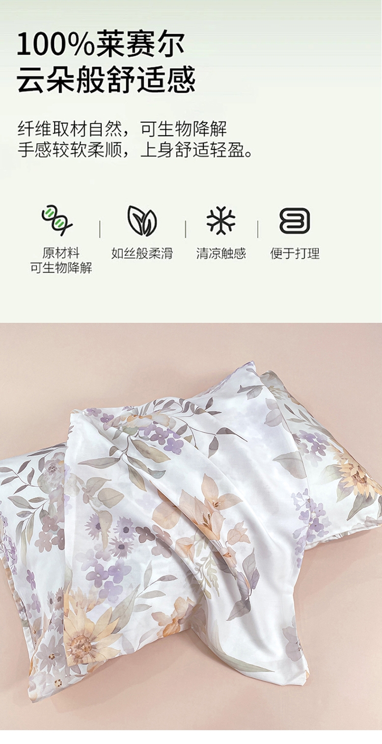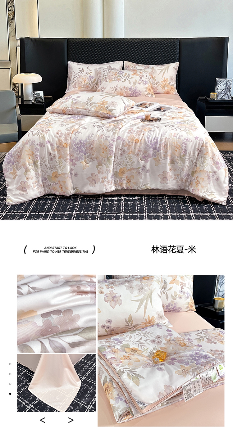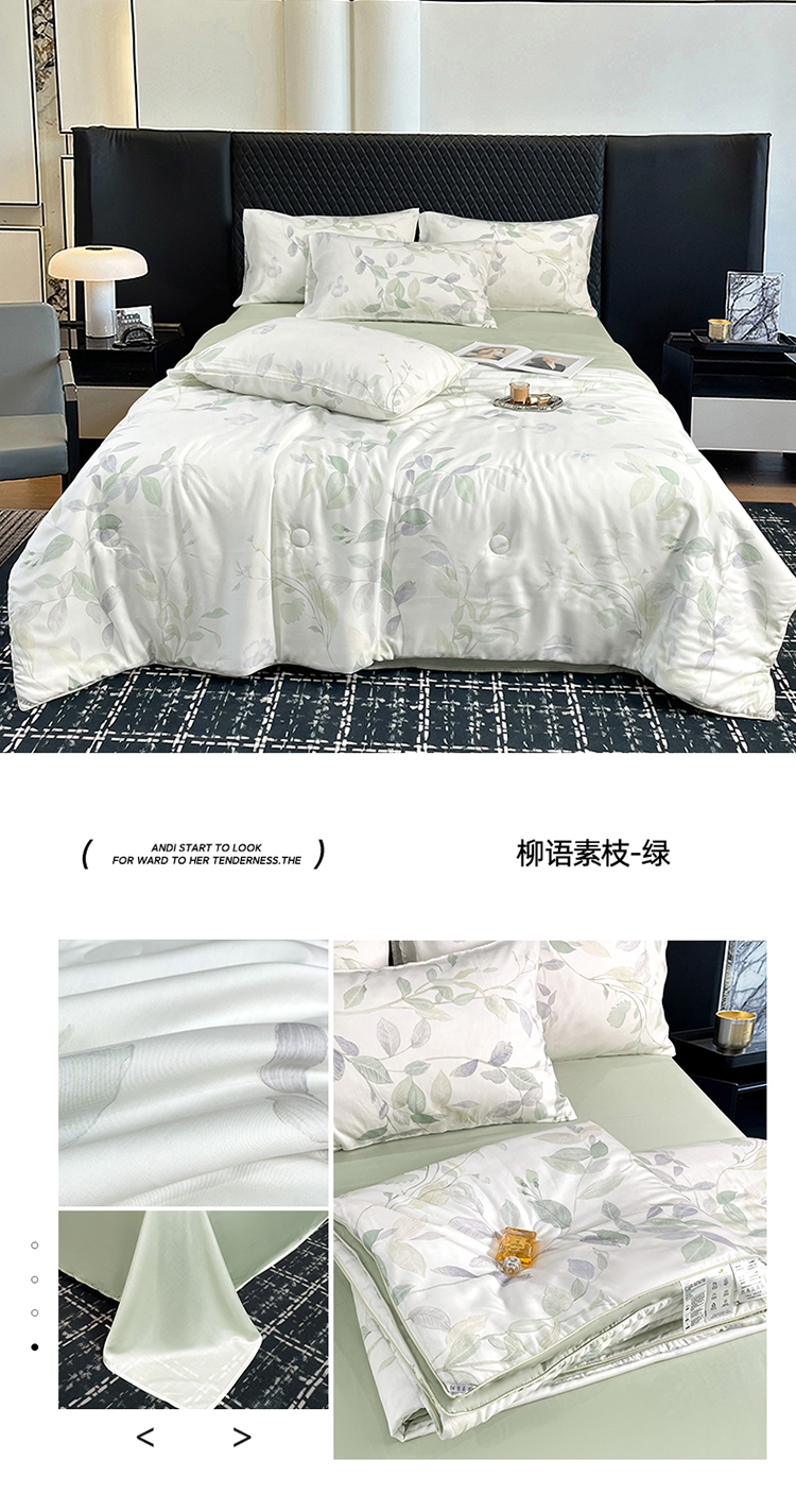采用亲肤的莱赛尔材质,柔软触感。;蚕蛹蛋白抗菌纤维填充,舒适环保。;新一代印染工艺,色牢度高,不易褪色,色彩靓丽。