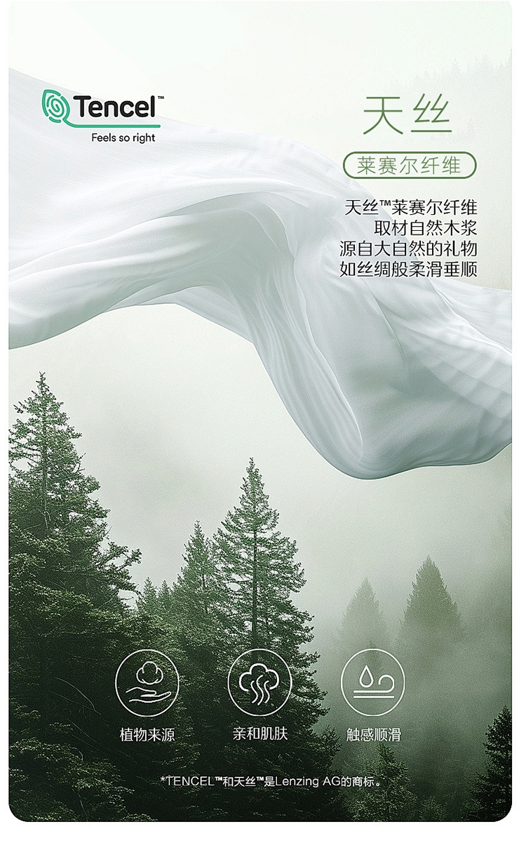 面料:100%莱赛尔纤维(50天丝)