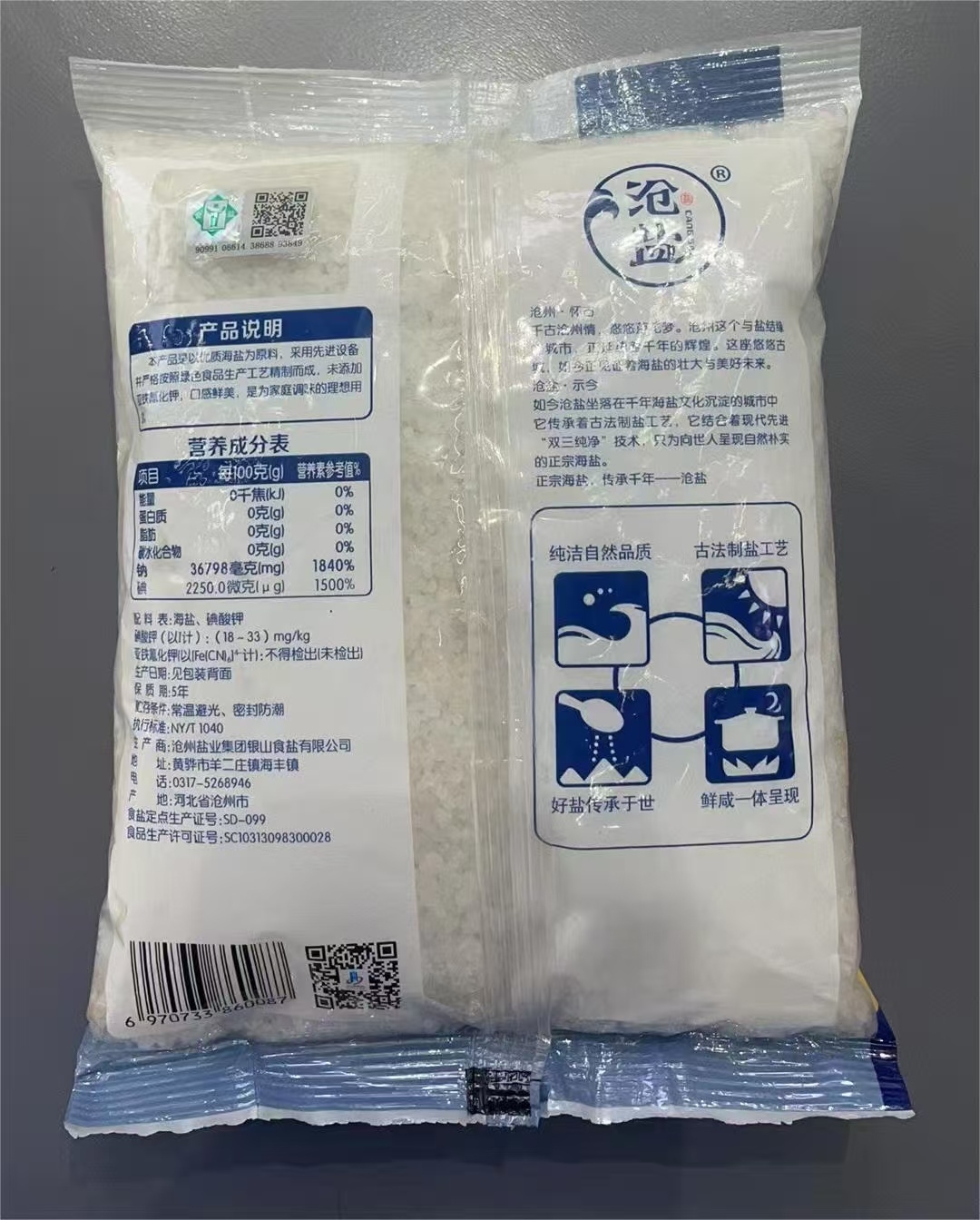 沧盐 日晒海盐腌菜泡菜加碘腌制盐800g