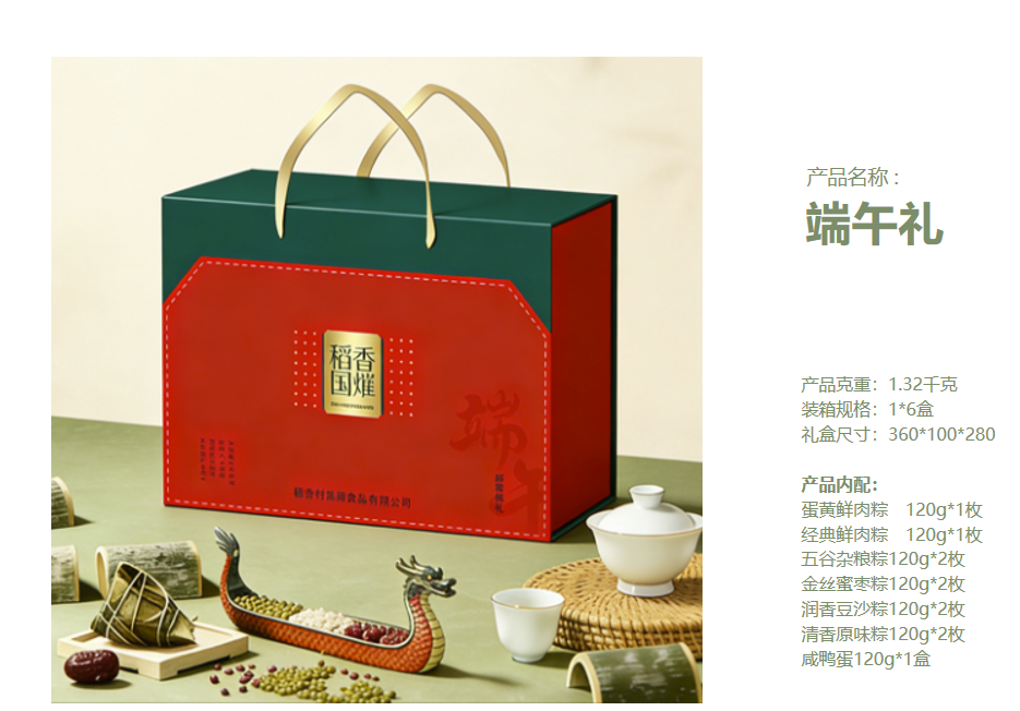 配置:蛋黄鲜肉粽 120g*1枚 经典鲜肉粽 120g*1枚 五谷杂粮粽120g*2枚 金丝蜜枣粽120g*2枚 润香豆沙粽120g*2枚 清香原味粽120g*2枚 咸鸭蛋120g*1盒