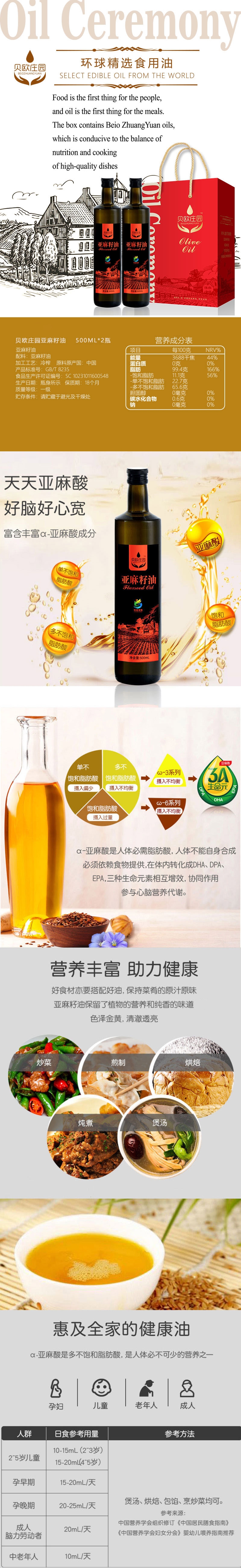 黄金树 亚麻籽油500ml*2瓶礼盒