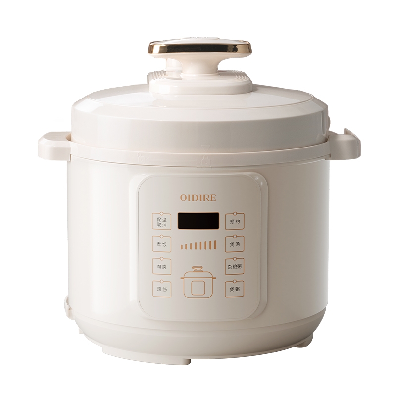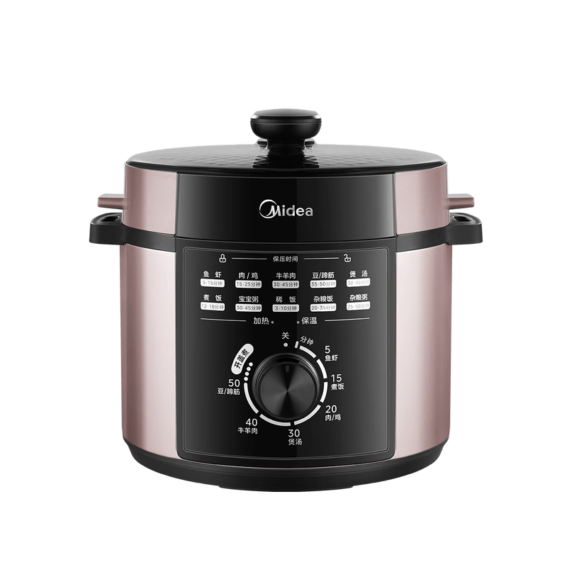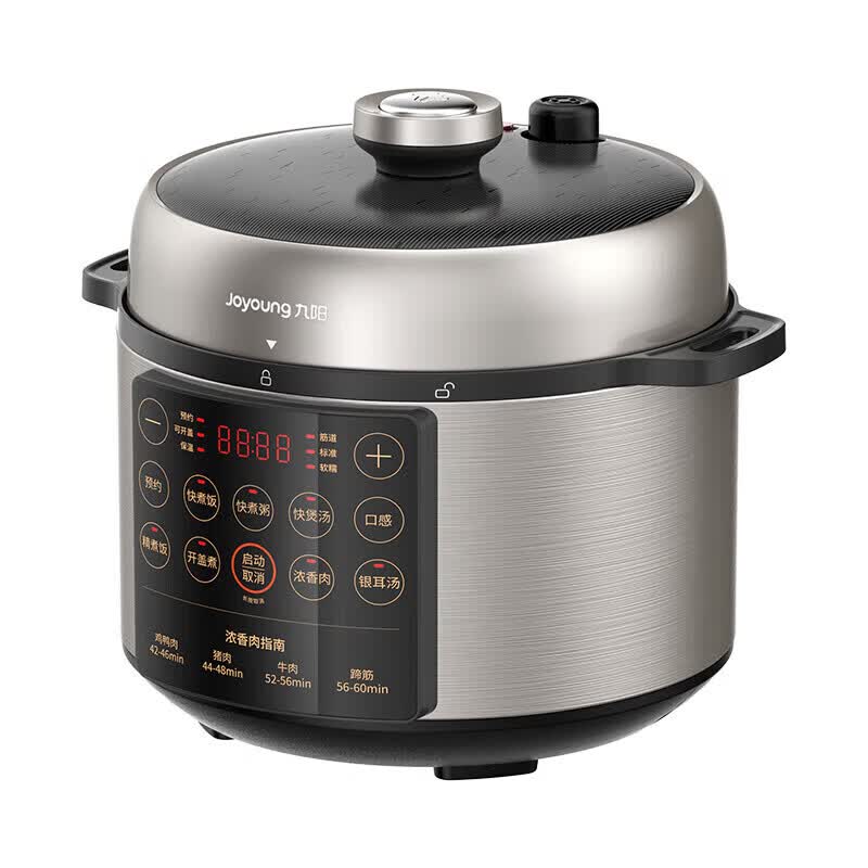 旋钮操作,细磨砂大旋钮,;三角稳定控压,6万次耐压不变形;;5L加厚内胆,容量相当于20个普通碗可满足2-8人