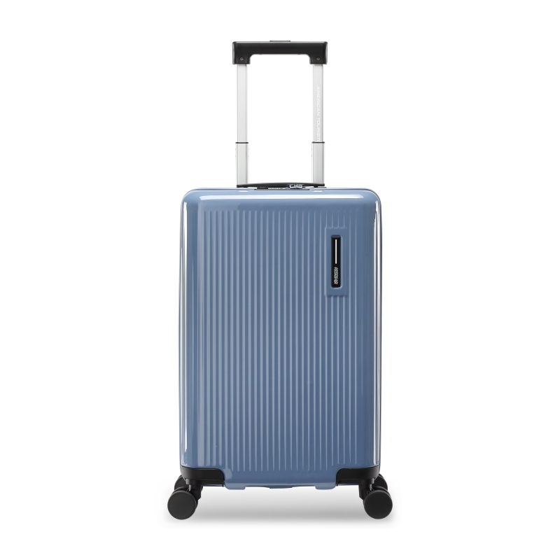 ABS+PC复合材质搭配磨砂工艺设计;360°灵活万向轮搭配银色光泽轮盖;全封闭隔层+拉链袋,置放物品更有序
