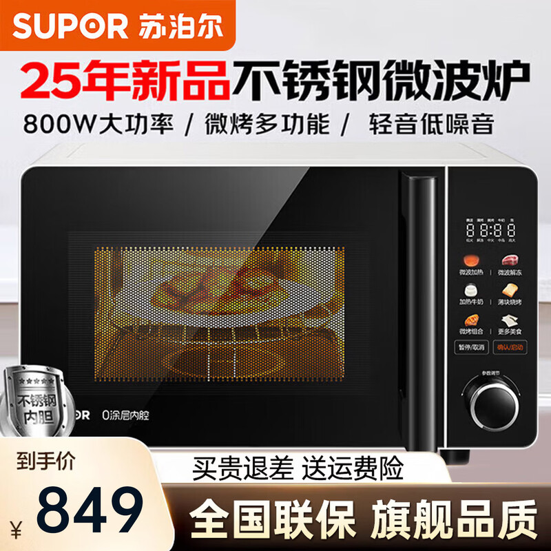 900W大功率25L大容量;零涂层不锈钢内胆智能变频微波炉;后置热风空气炸功能