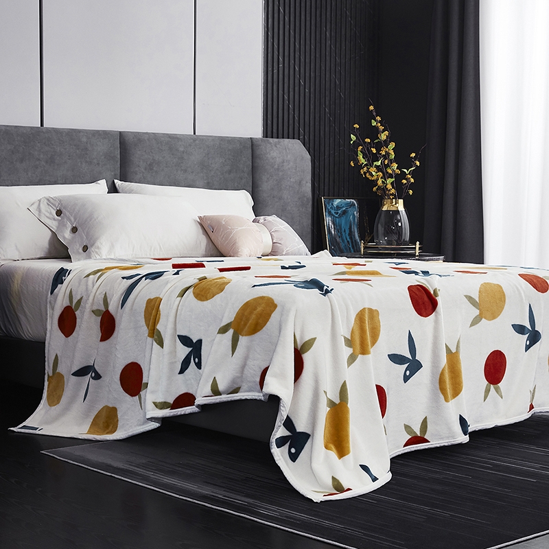 法兰绒是指粗梳毛纱织制的一种柔软而有绒面的毛织物;产品轻薄舒适、方便打理携带。乃居家、旅行;花型设计独特,绒面细腻丰盈,柔软舒适,透气舒爽