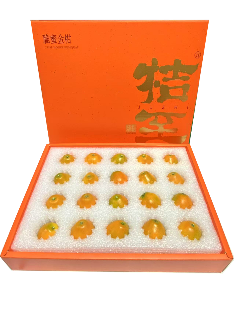 脆蜜金桔,果大皮薄、汁多肉厚、高糖清甜、无核化渣;含有大量的金橘苷、维生素和柠檬酸;常食可增强机体的抗寒能力,防治感冒,是食疗良品