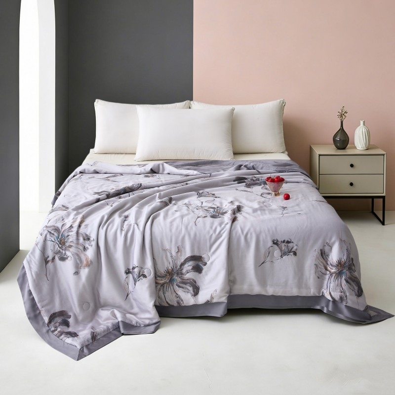 夏日专属夏凉被 纳米水洗棉印花夏被;纳米印花布料,轻柔细腻,吸湿透气, ;具有优良的贴肤性能,良好的透气性与吸湿性,肌理感好