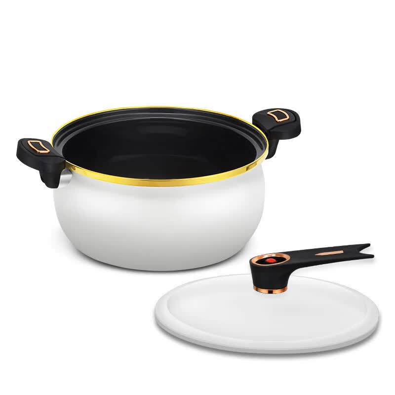 盖子特有气阀泄压设计,随时打开排气降压;双耳锁压一体更密封,锅盖紧密贴合,循环热力成微压;炖煮煲涮,美味佳肴,一锅搞定